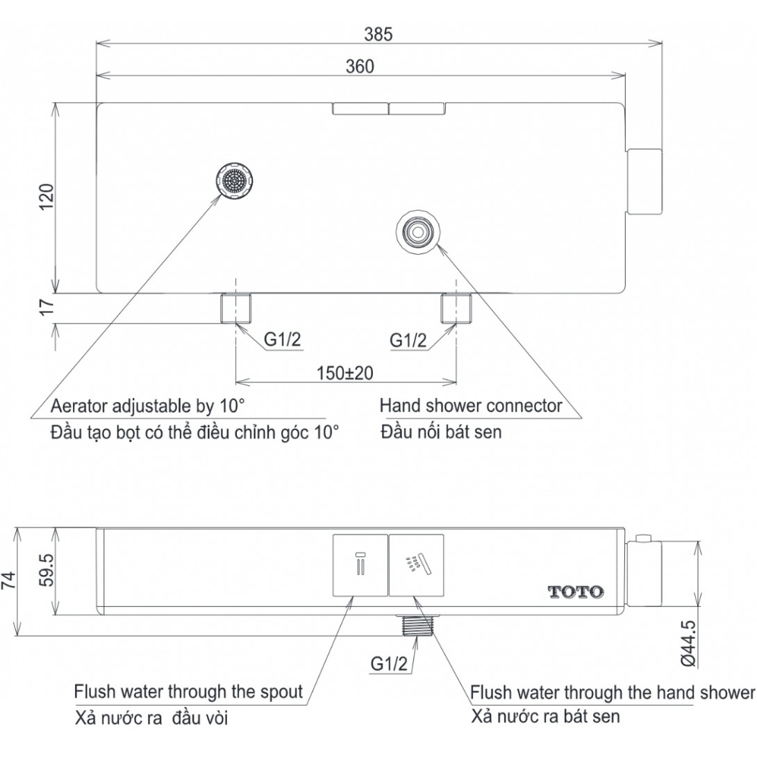 Thông tin vòi sen Toto TBV10400V nhiệt độ phím bấm