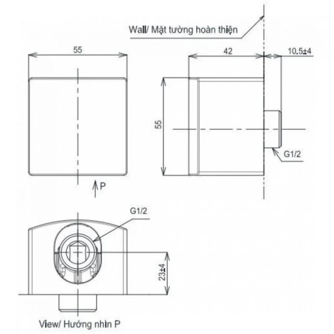 - Tên sản phẩm: Cú nối tường gắn tay sen tắm âm tường