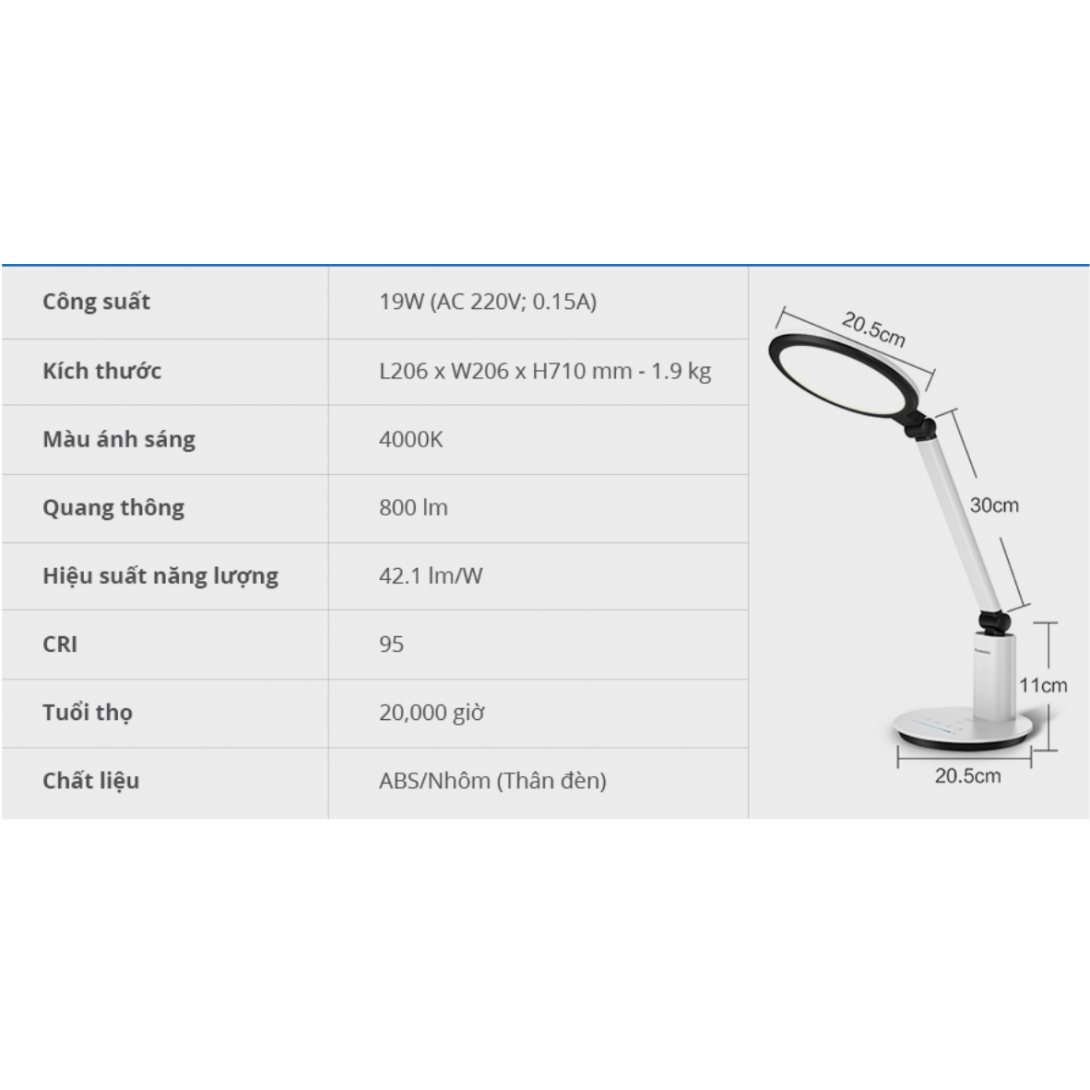 Reviews Over Đèn bàn LED Desk lamp 19W HHLT062319 Đèn Màu Trắng Ánh Sáng 4000k