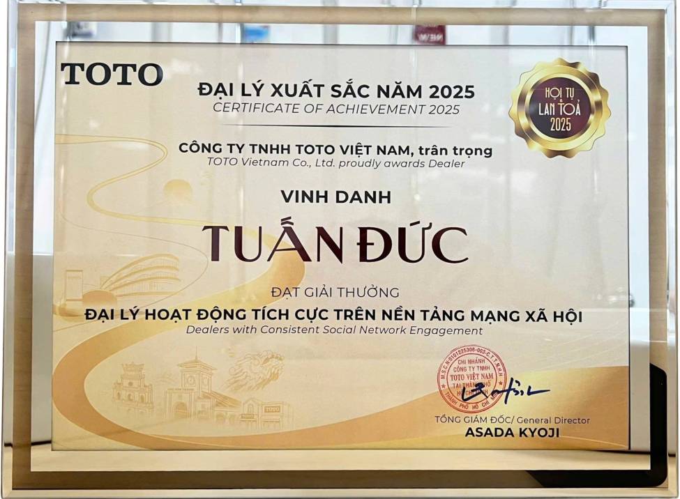 Giải thưởng vinh danh và Chứng nhận đại lý chính thức TDM Tuấn Đức