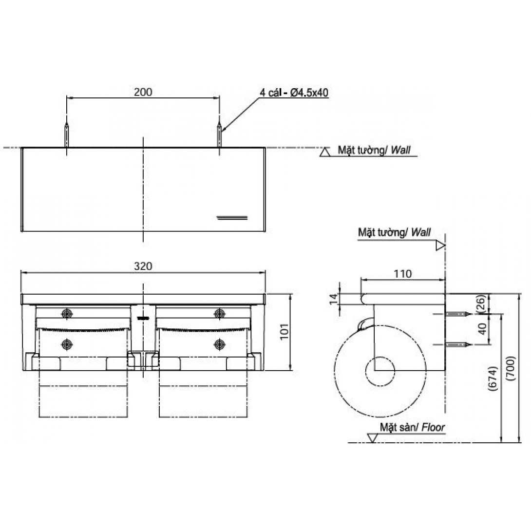 Bản vẽ kích thước hộp giấy đôi YH702 TOTO