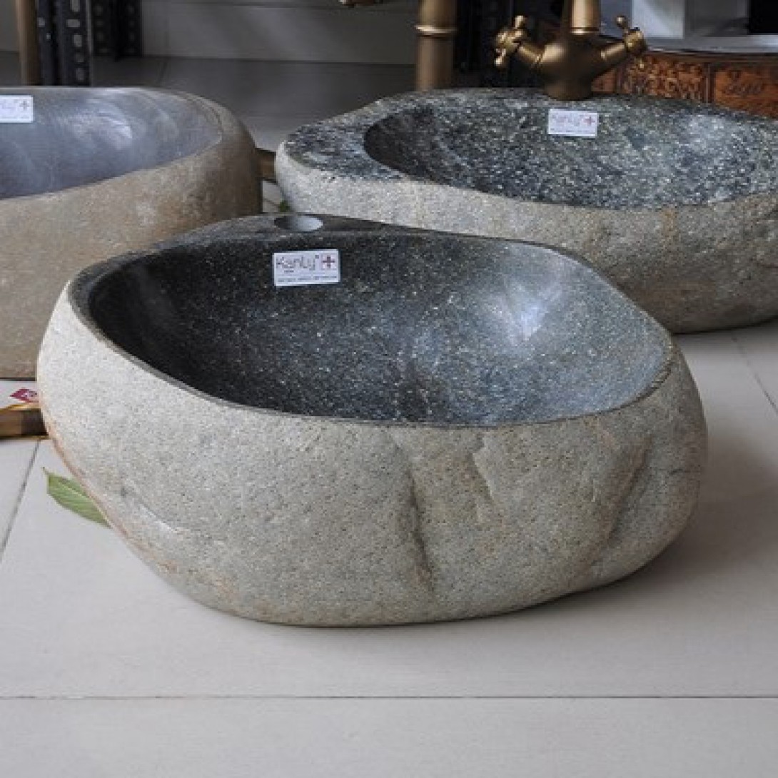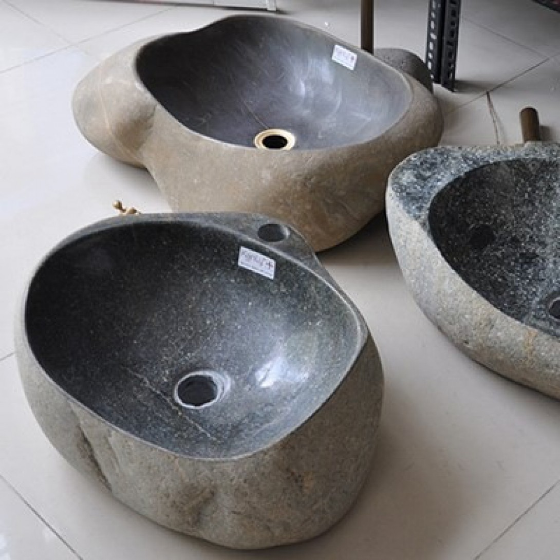 - Những cục đá cuội ngoài tự nhiên ngoài suối, sông, hồ được thợ đá nhà nghề khoét rỗng lòng thành chậu rửa.