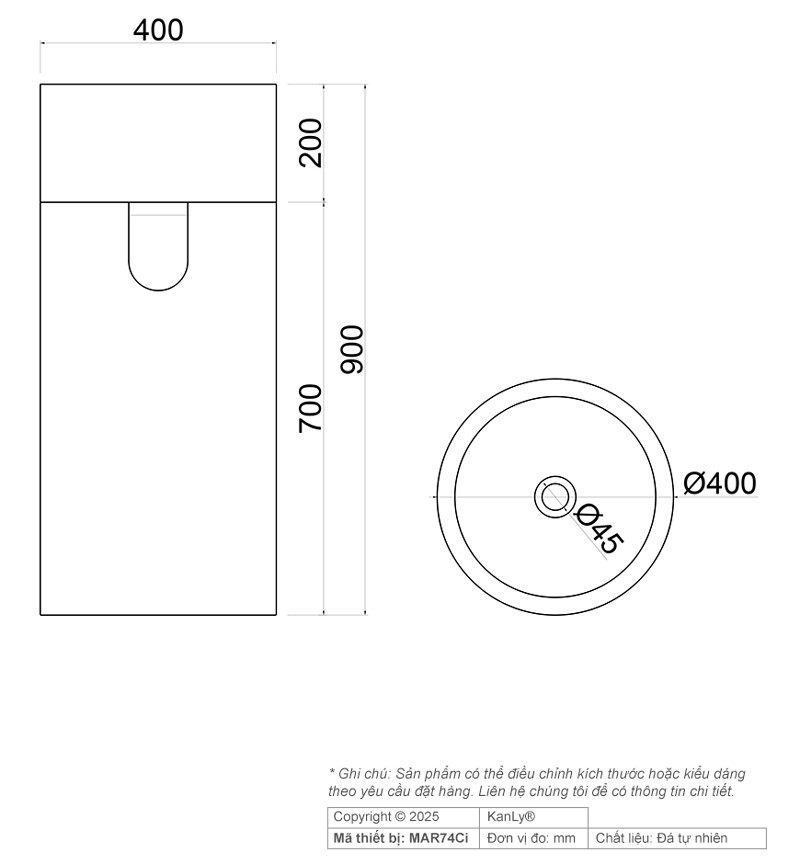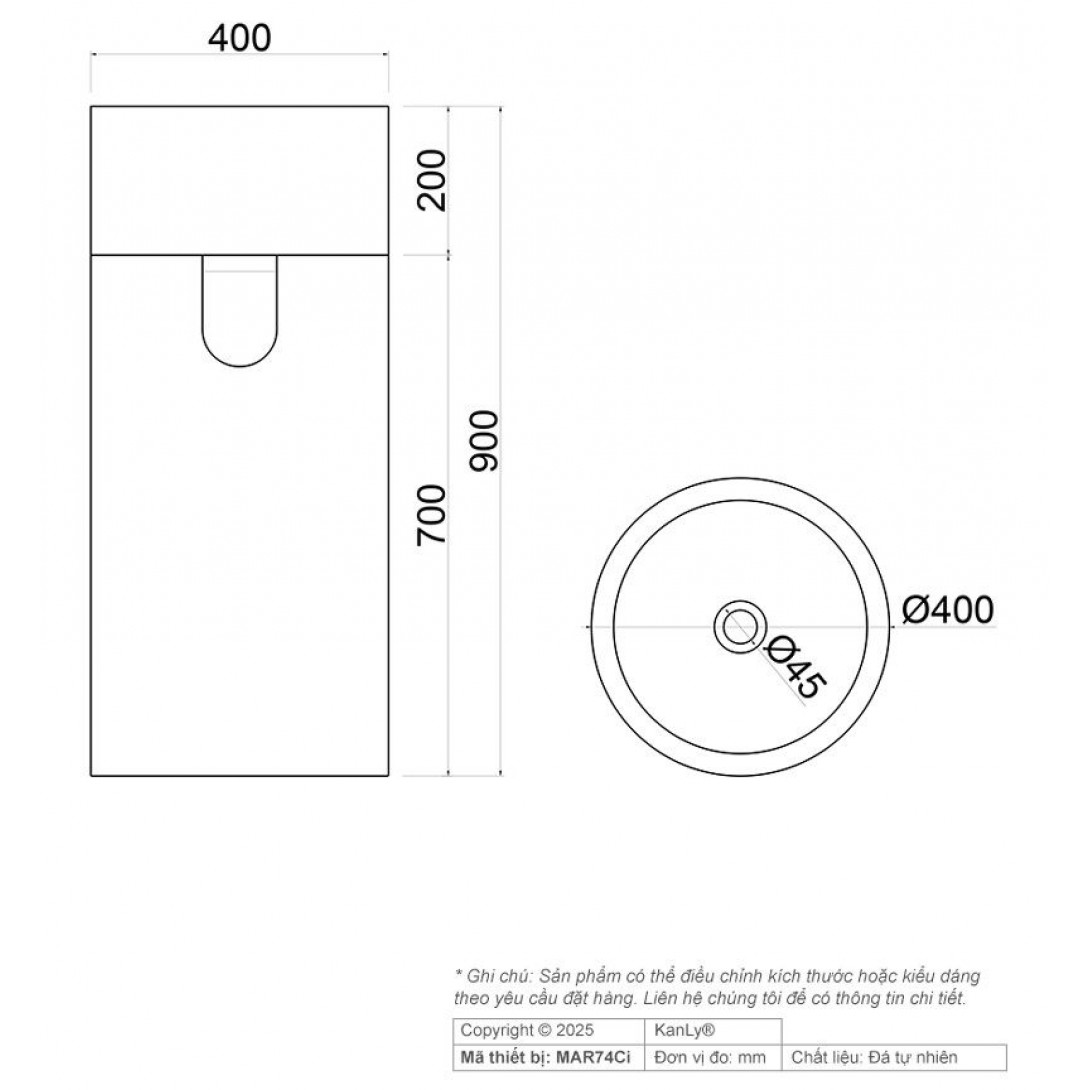 Bản vẽ kỹ thuật chậu Kanly MAR74CI