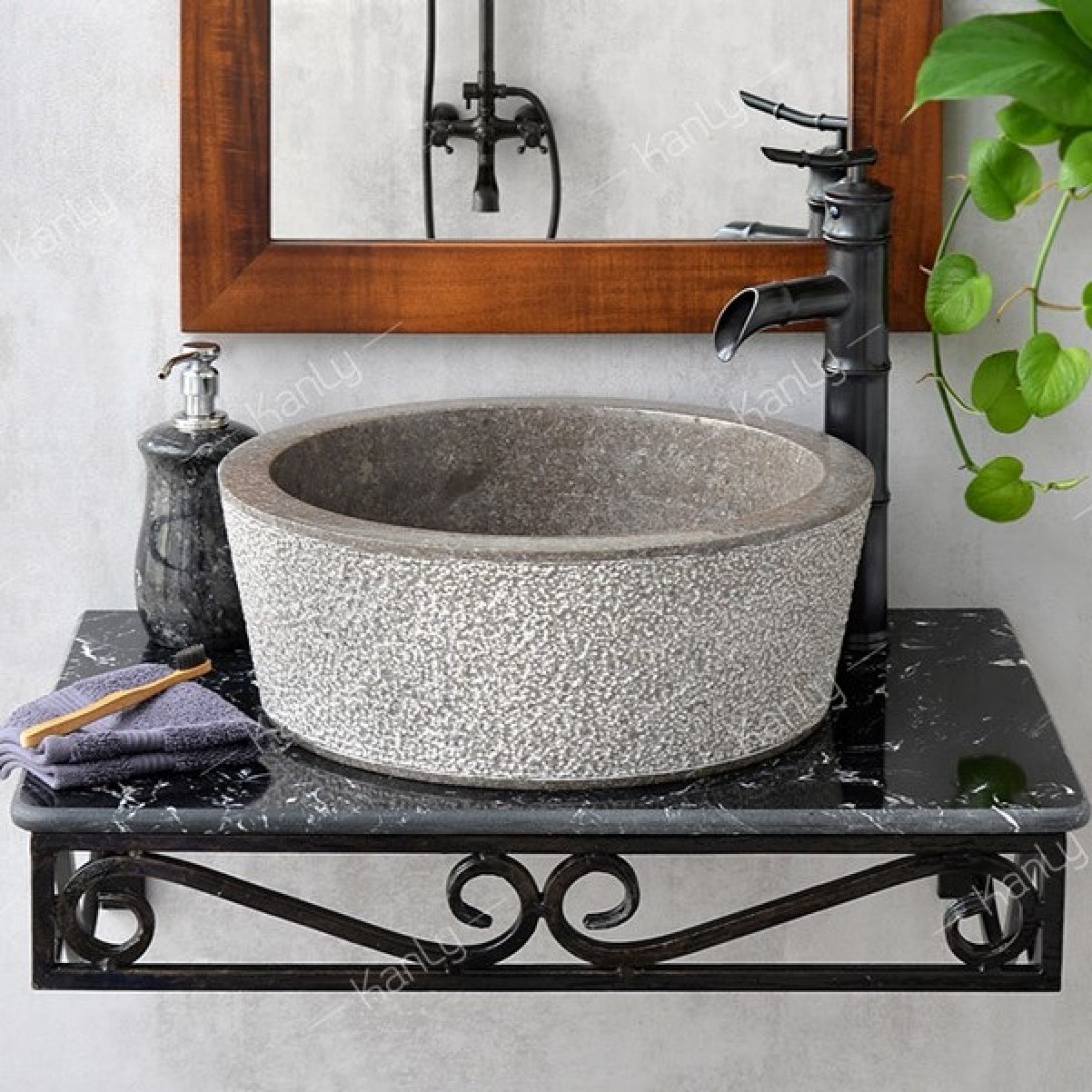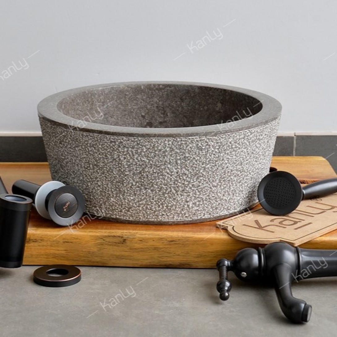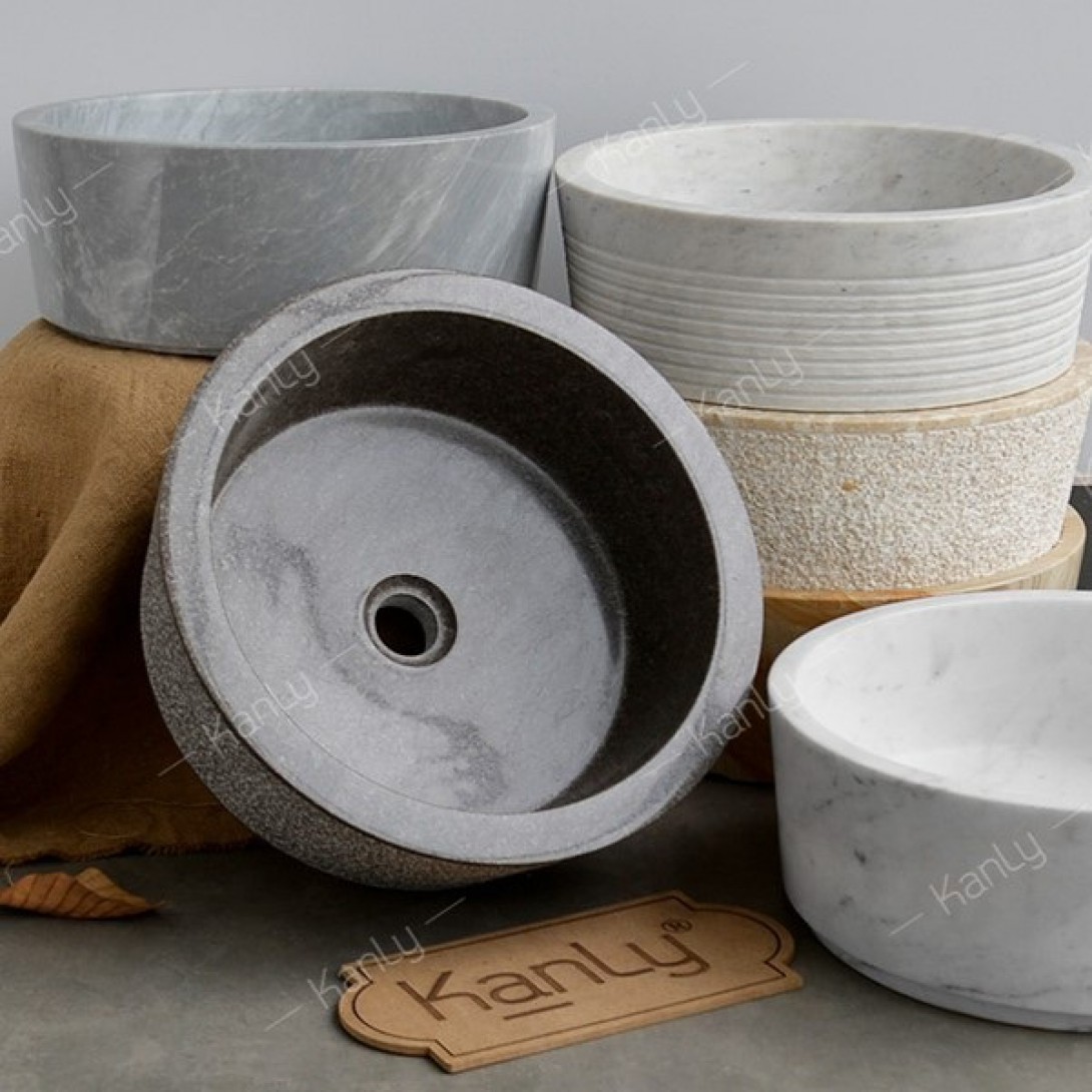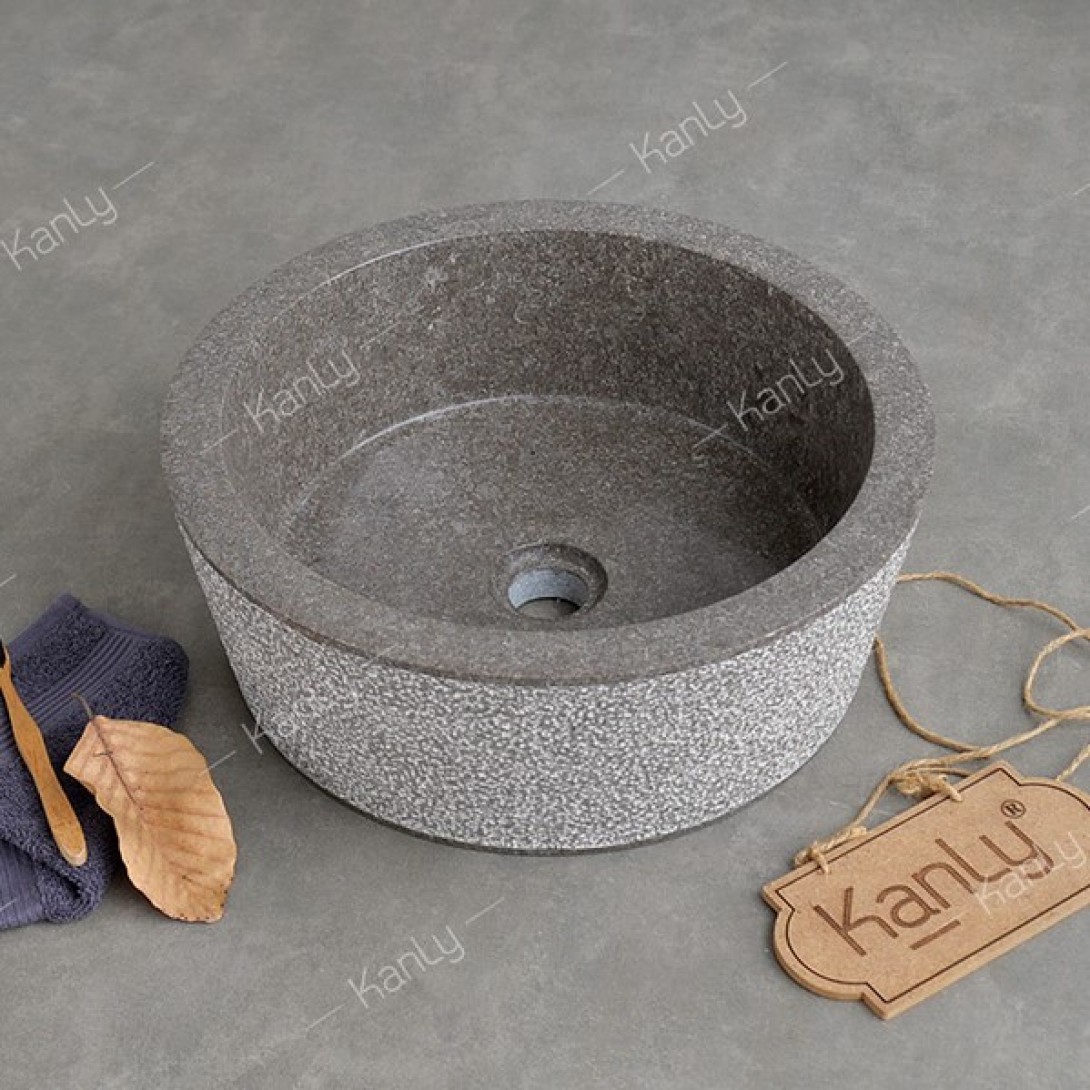 Chậu rửa mặt lavabo Lavabo Kanly MAR7E4I đặt bàn đá tự nhiên tròn