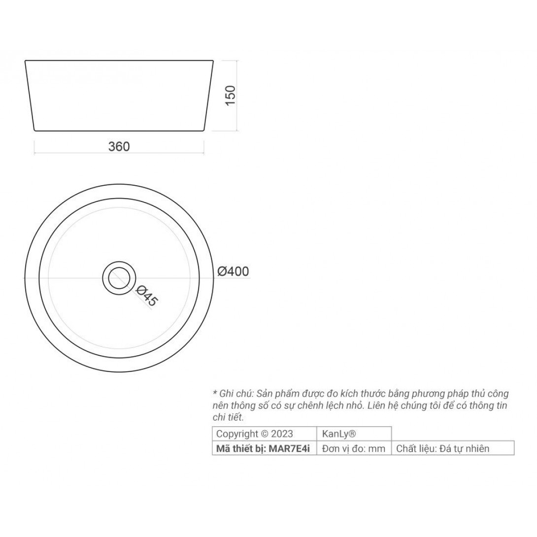 Thông tin chậu rửa mặt đá Kanly MAR7E4I đặt bàn