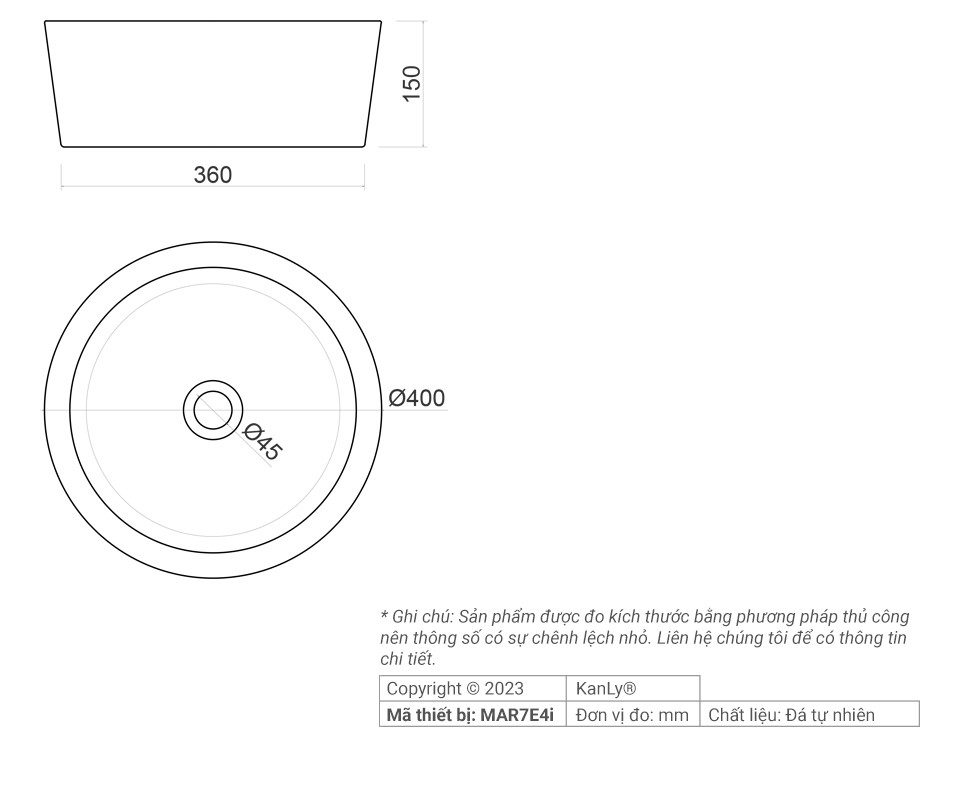 Bản vẽ kỹ thuật chậu Kanly MAR7E4I
