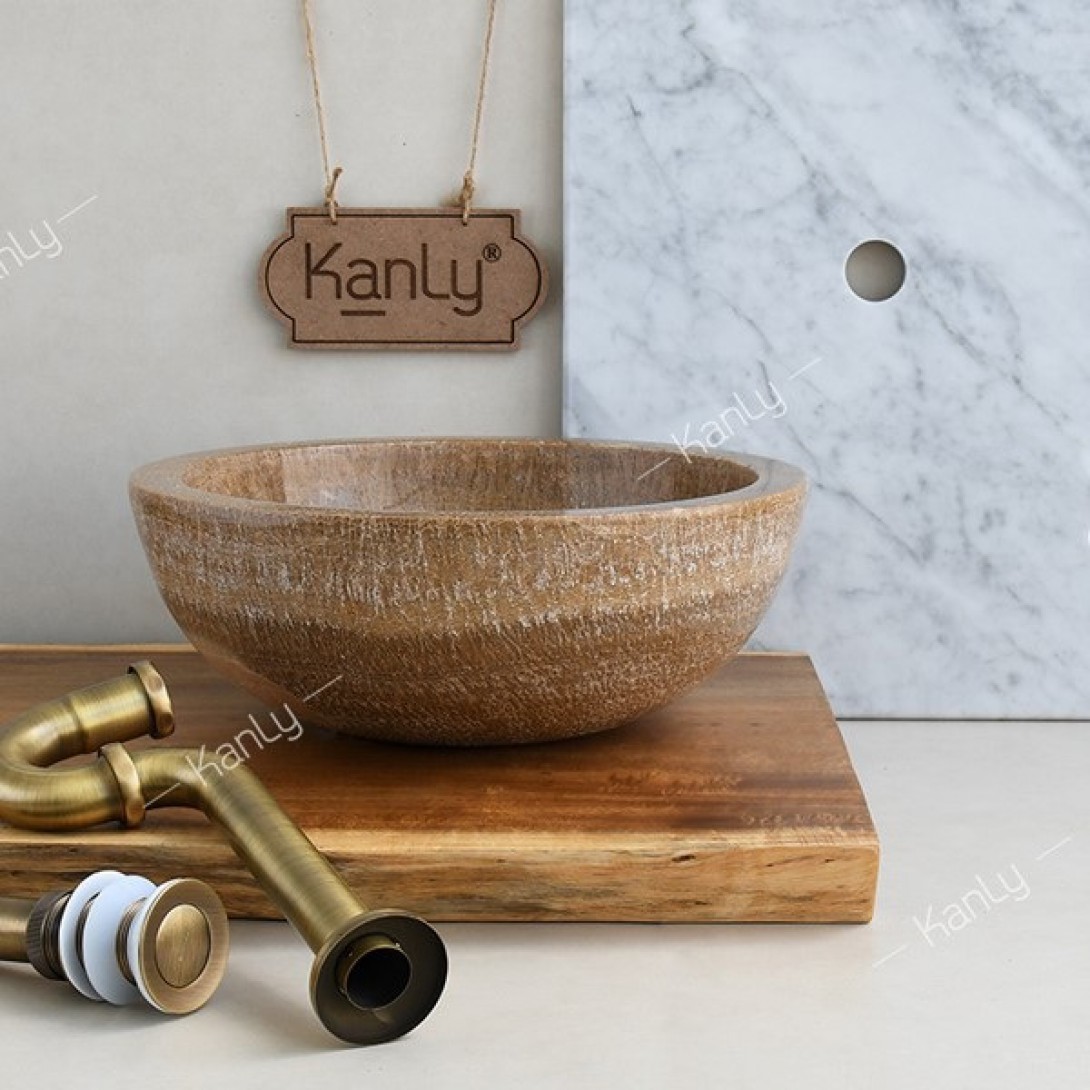 Chậu Rửa Mặt Lavabo Kanly MAR62V Đặt Bàn Đá Tự Nhiên 300x130 mm