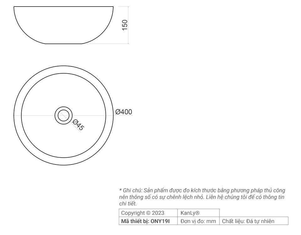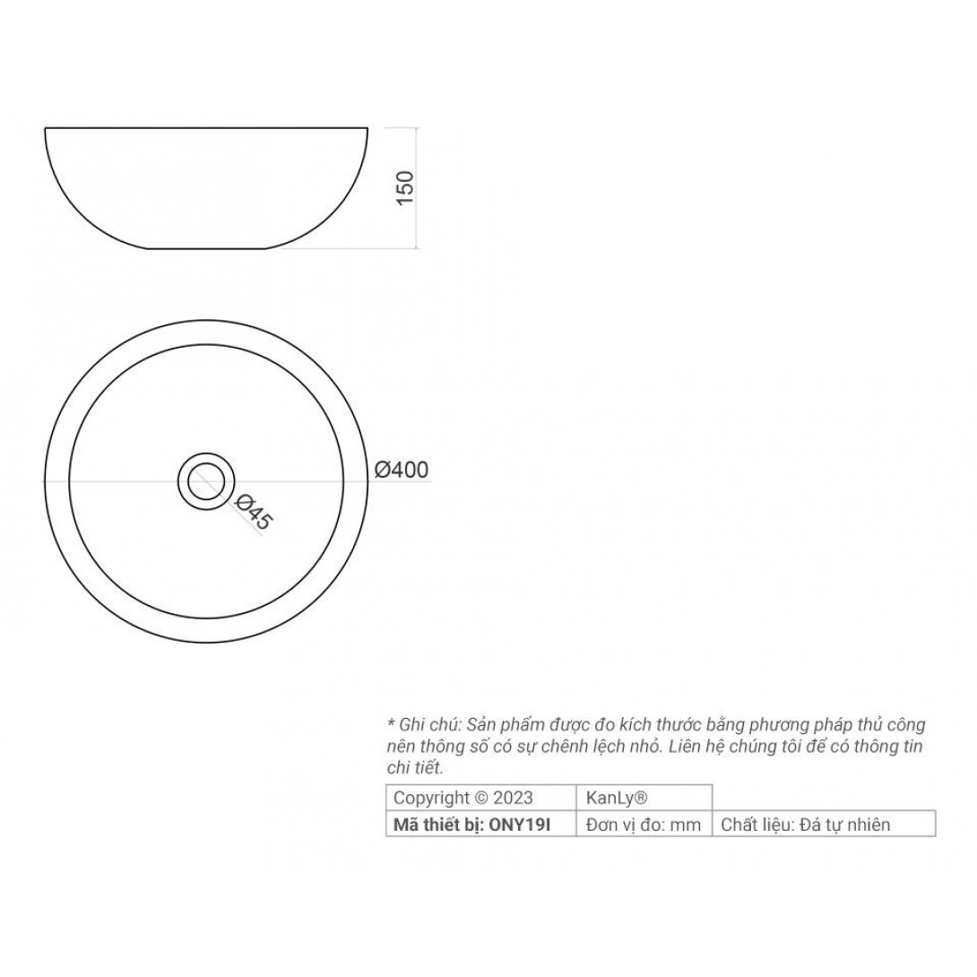 Bản vẽ kỹ thuật chậu Kanly ONY19I