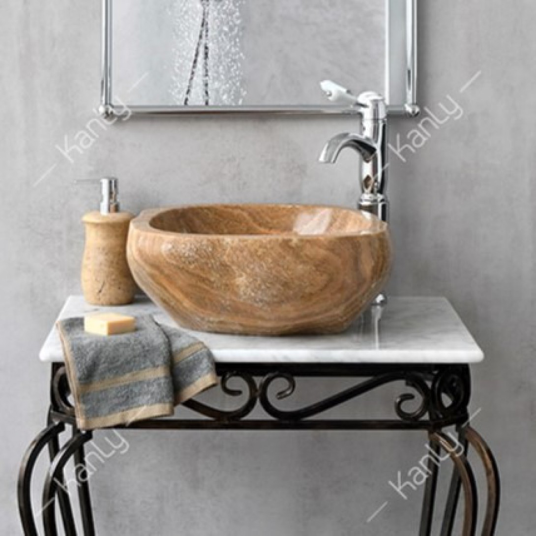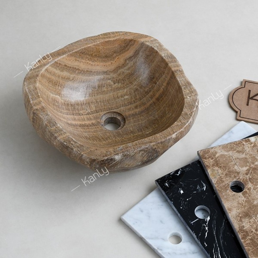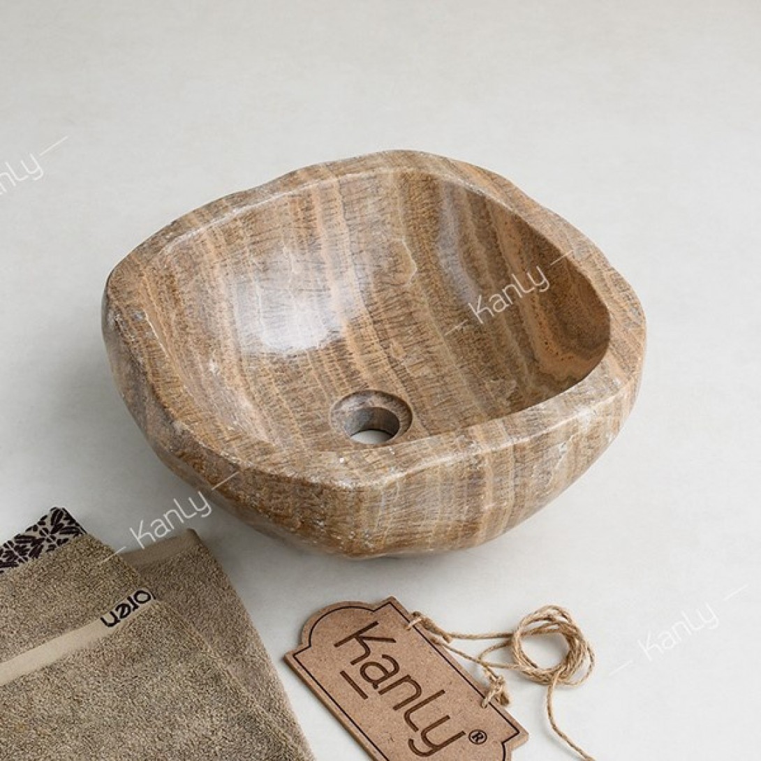 Chậu rửa mặt lavabo đá Kanly ONY59I onyx tự nhiên nâu vân gỗ