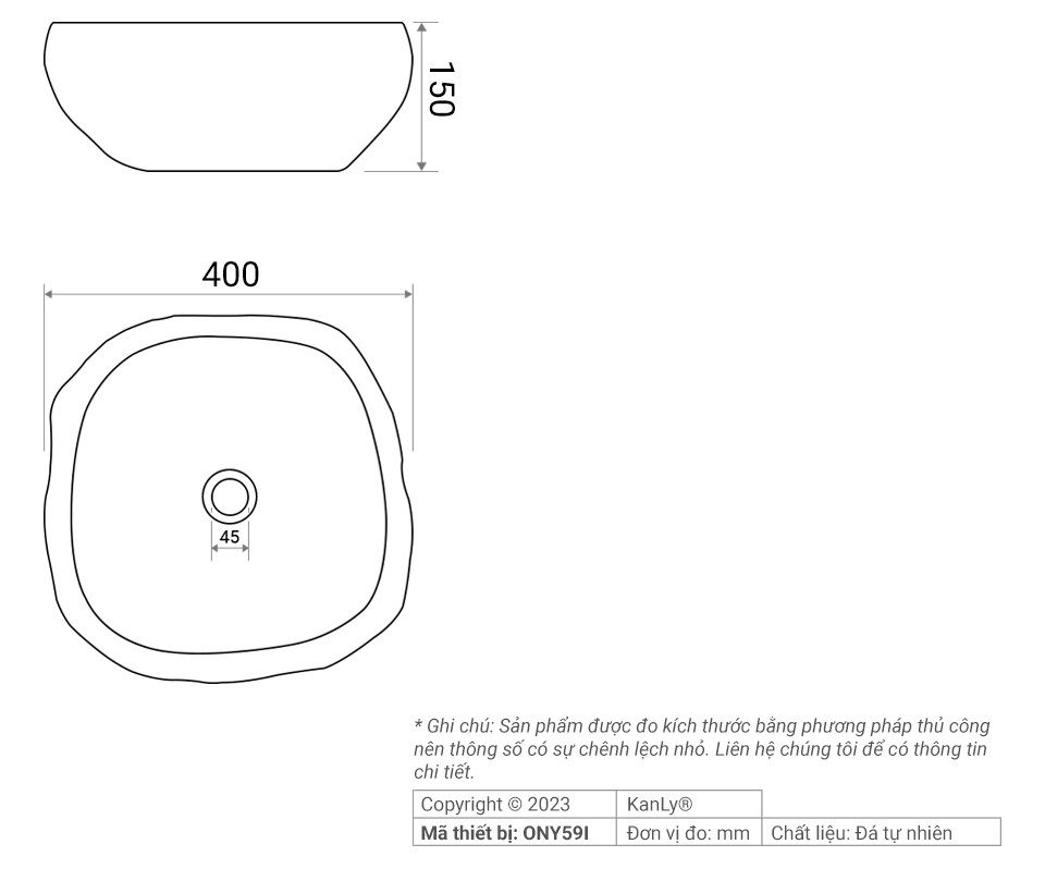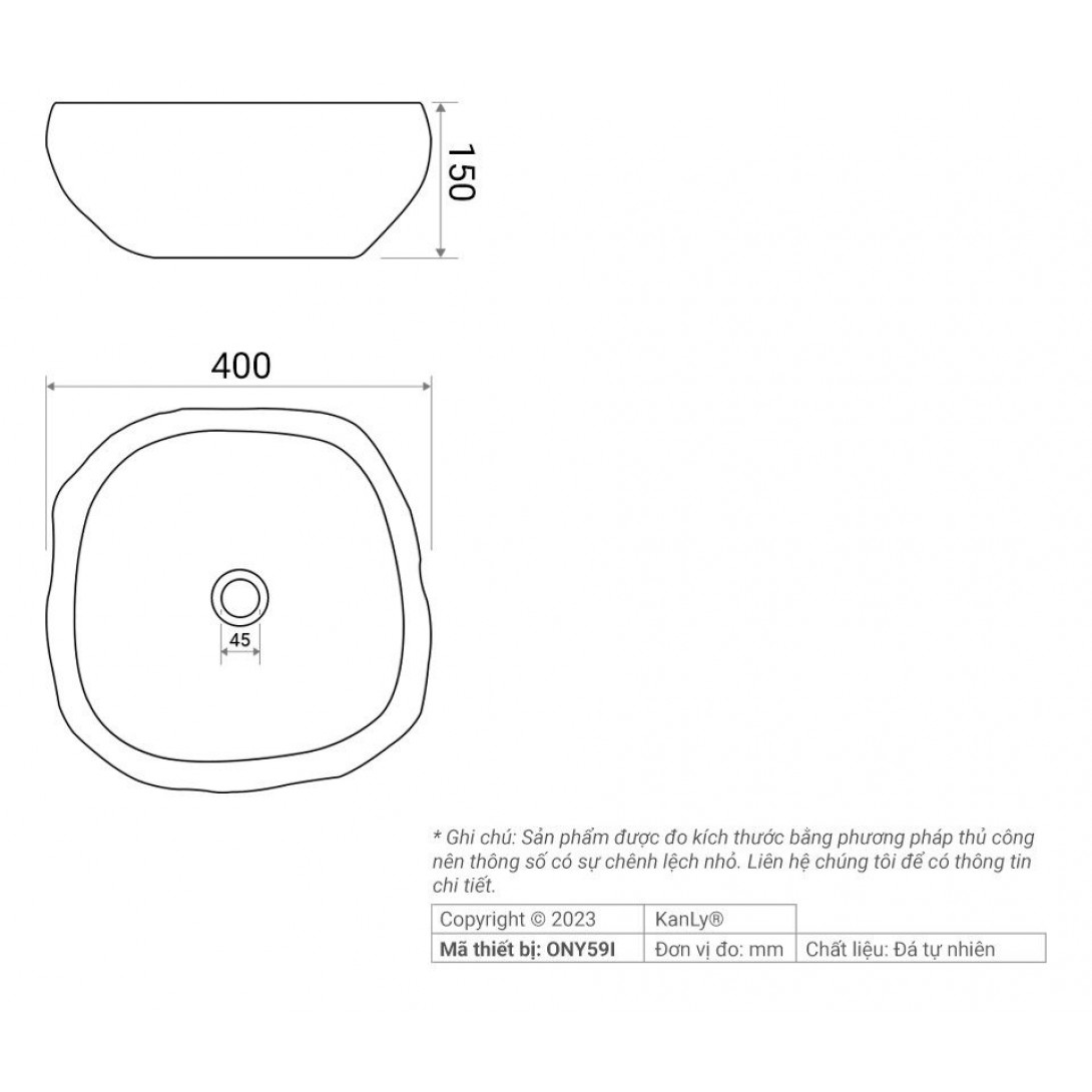 Bản vẽ kỹ thuật chậu lavabo Kanly ONY59I