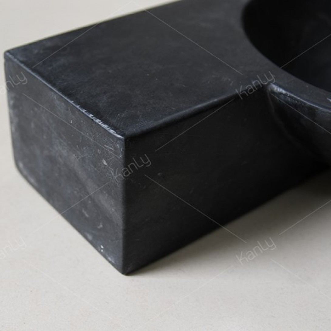 Chậu Rửa Mặt Lavabo Kanly MAR32V Đặt Bàn Đá Tự Nhiên 400x120 mm Màu Đen