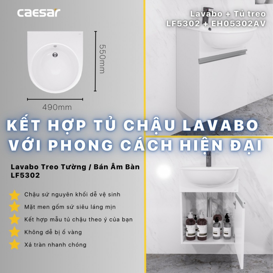 - Phù hợp lắp đặt với tủ lavabo Caesar: EH05302AV