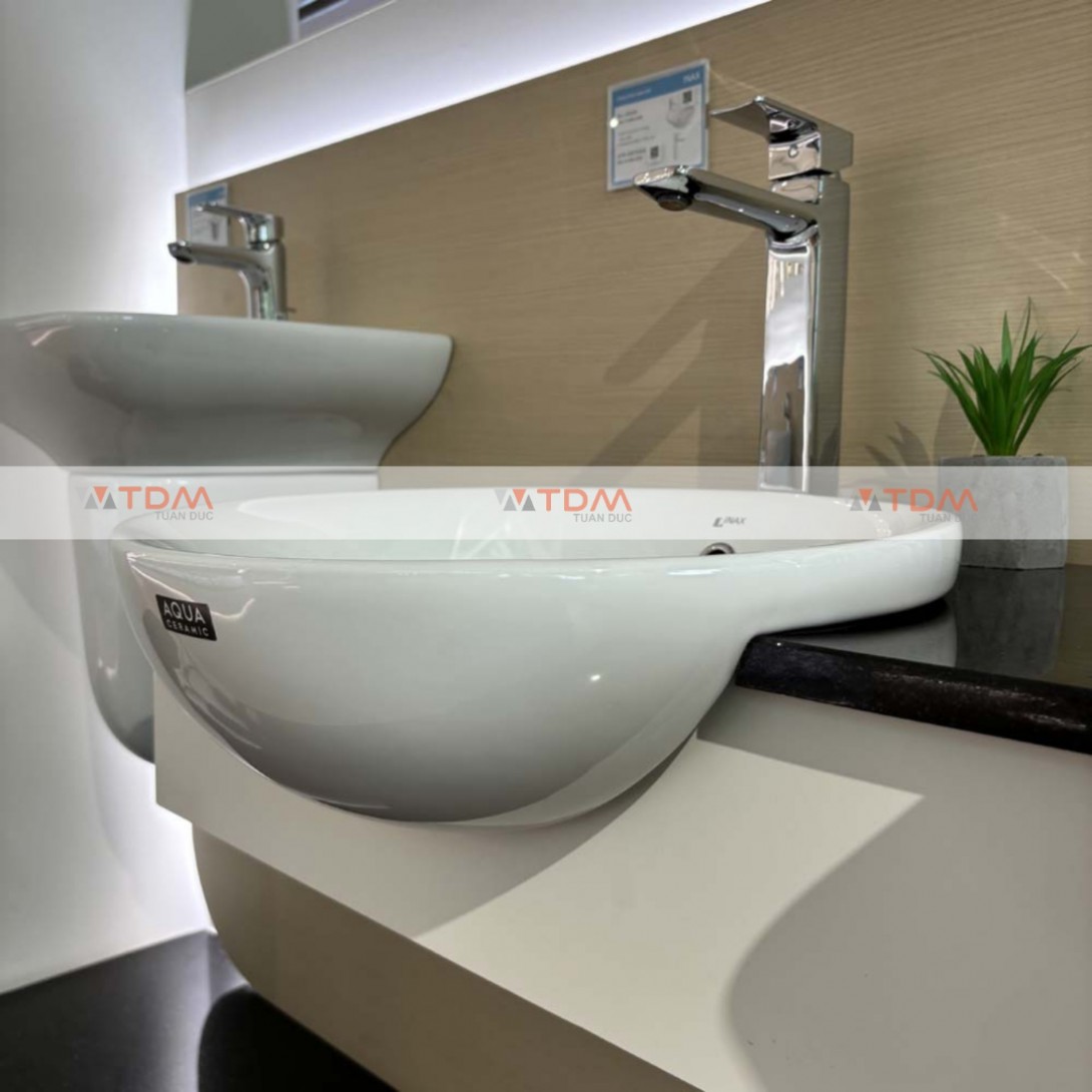 - Chất liệu sứ cao cấp, có men chống bám bẩn Aqua Ceramic trong lòng lavabo