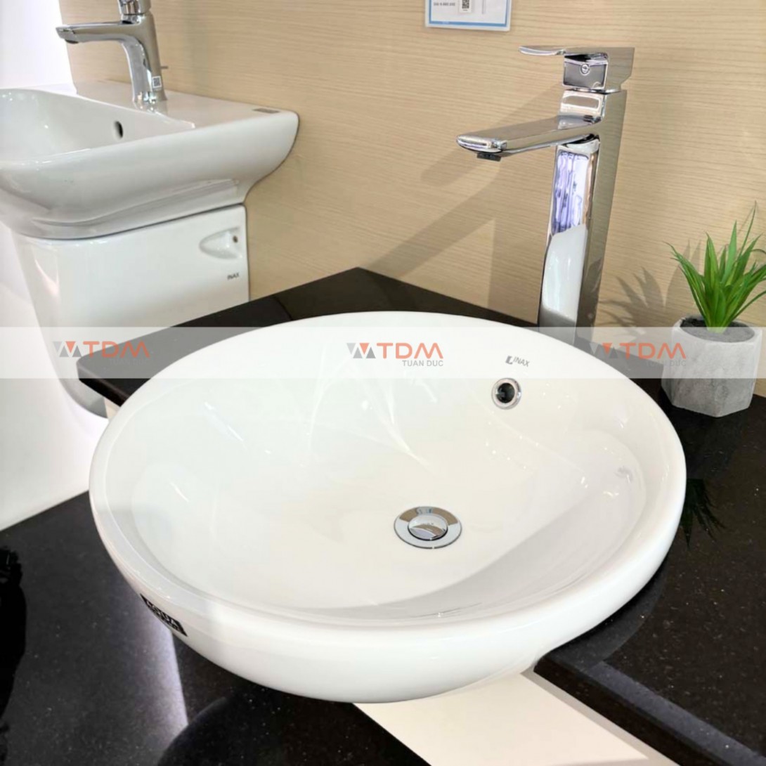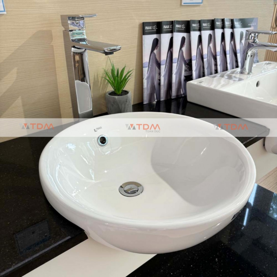 - Dòng sản phẩm chậu rửa mặt lavabo INAX đặt bàn AL-333V bán âm hình tròn đến từ thương hiệu thiết bị vệ sinh INAX