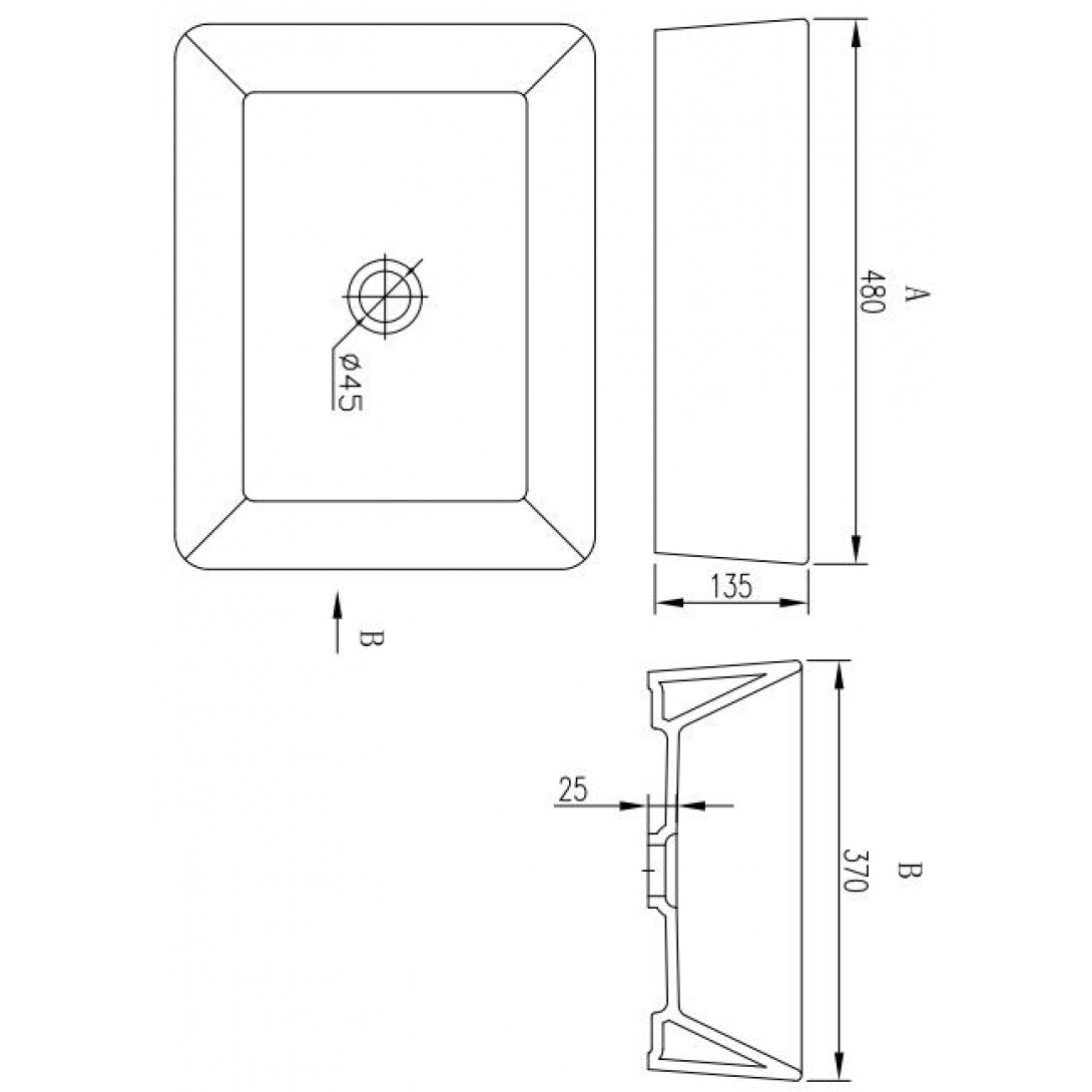 - Lỗ thoát nước: φ45mm