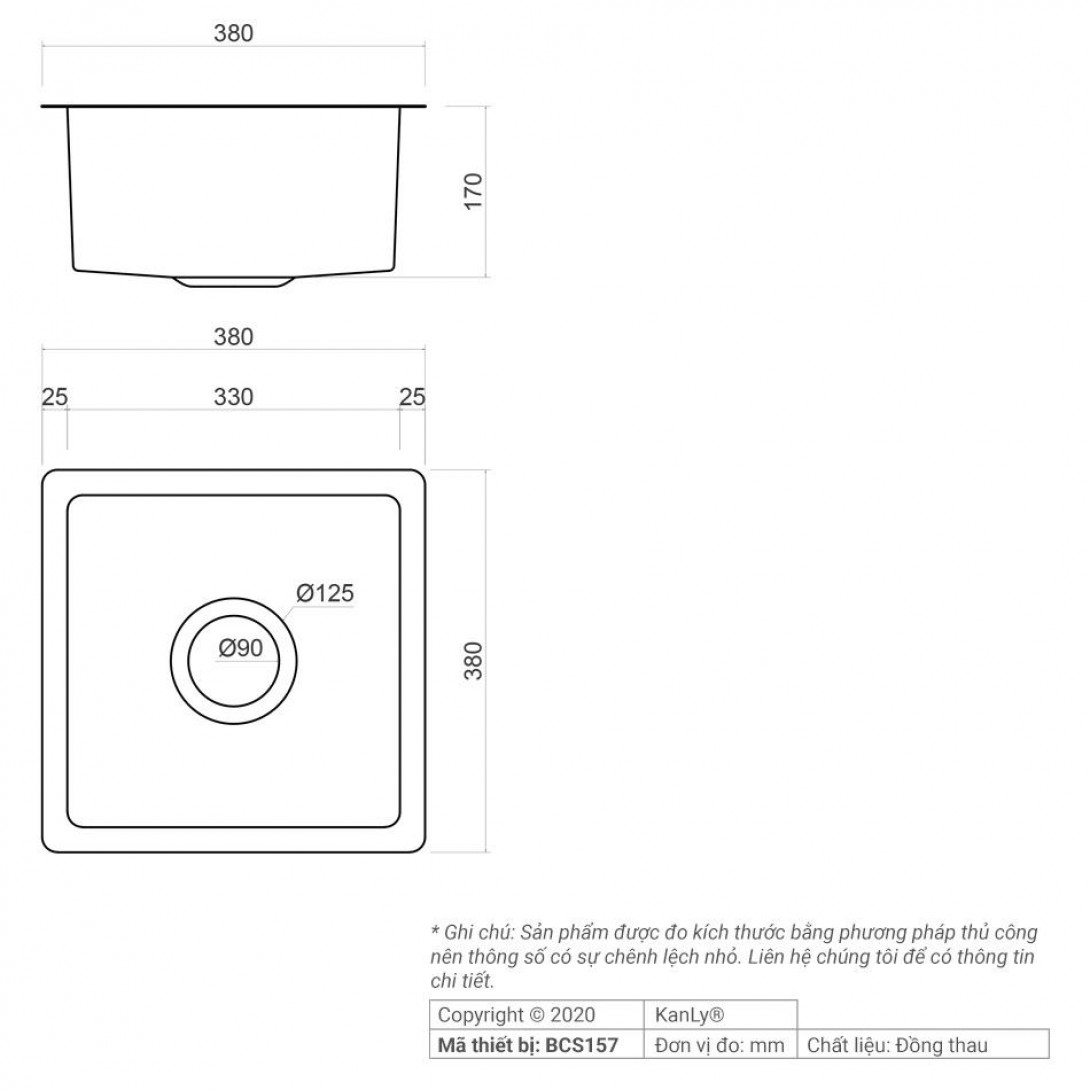 Thông tin chậu lavabo Kanly BCS157 âm bàn dương vành
