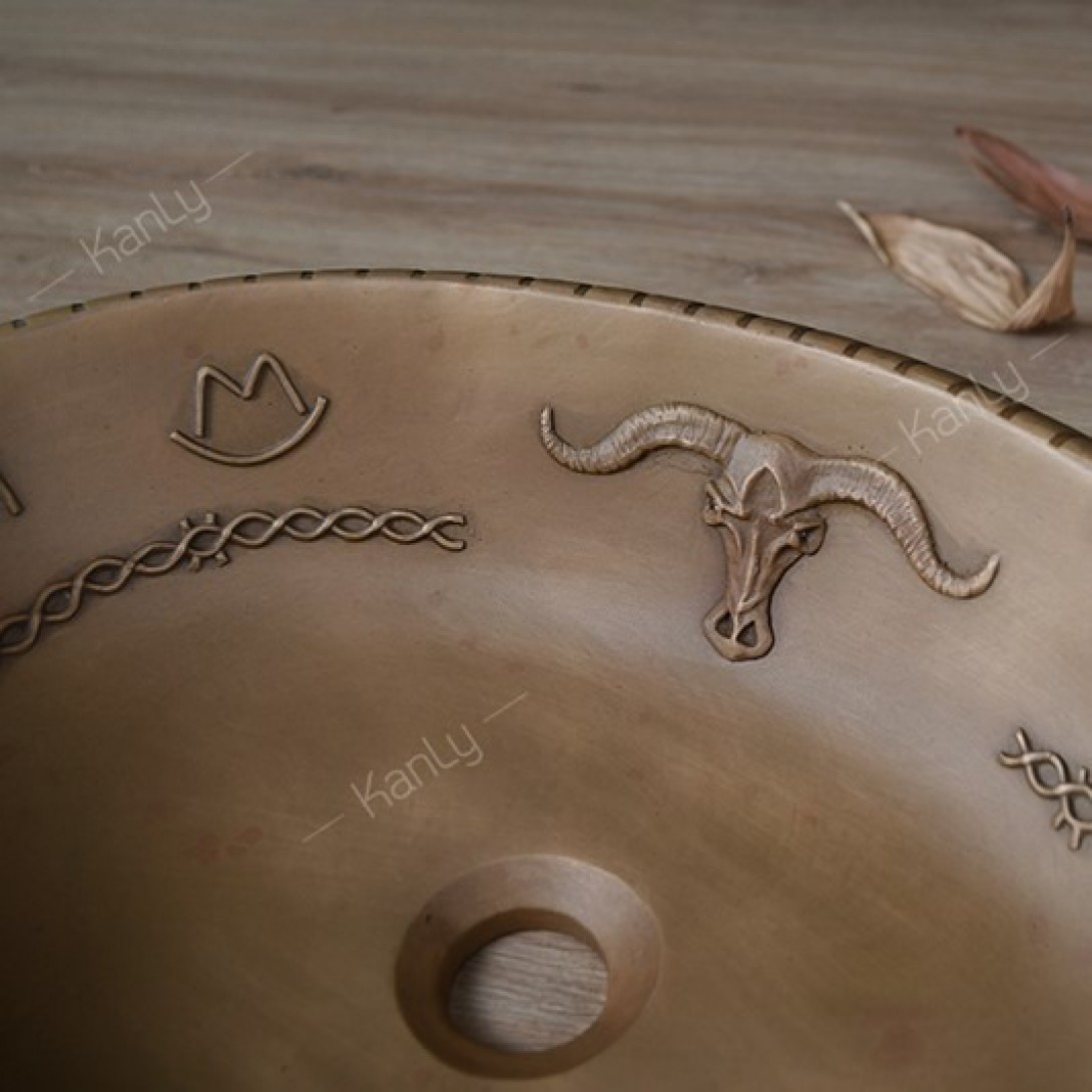 Chậu Lavabo Kanly BS026 Đặt Bàn Đồng Thau Họa Tiết Đầu Trâu 490x380x130 mm - Tuấn Đức