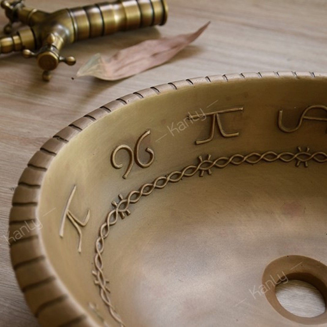 Chậu Lavabo Kanly CS03 Đặt Bàn Đồng Thau Họa Tiết Xù Xì Kiểu Cổ