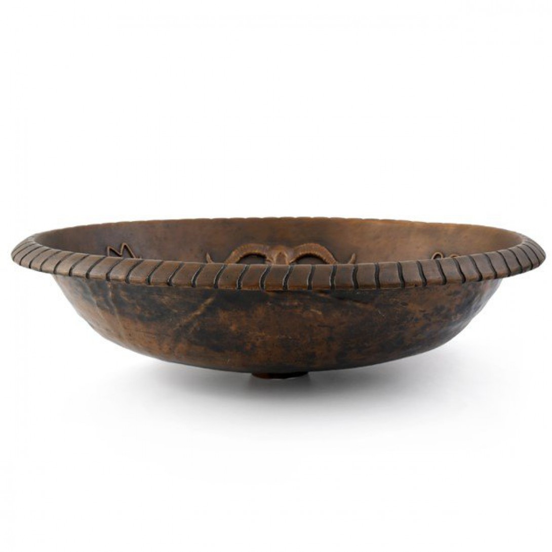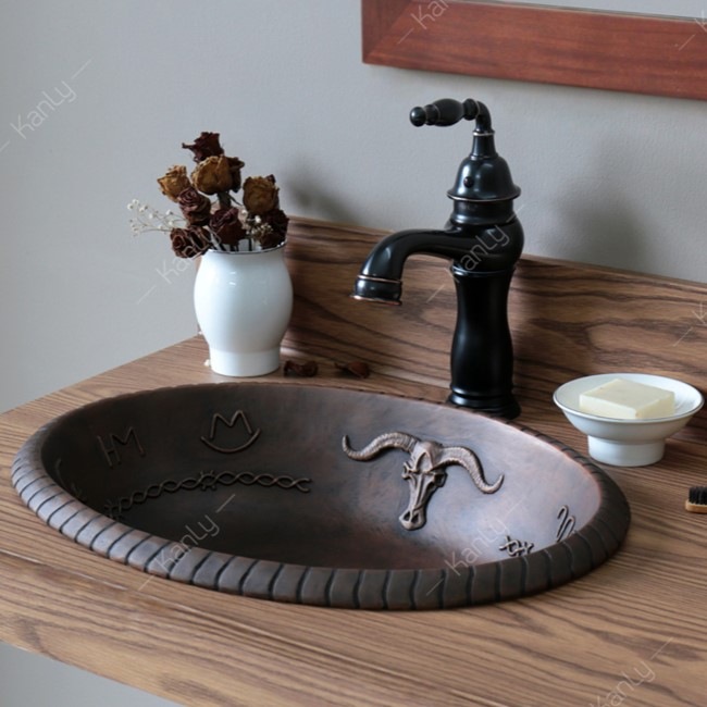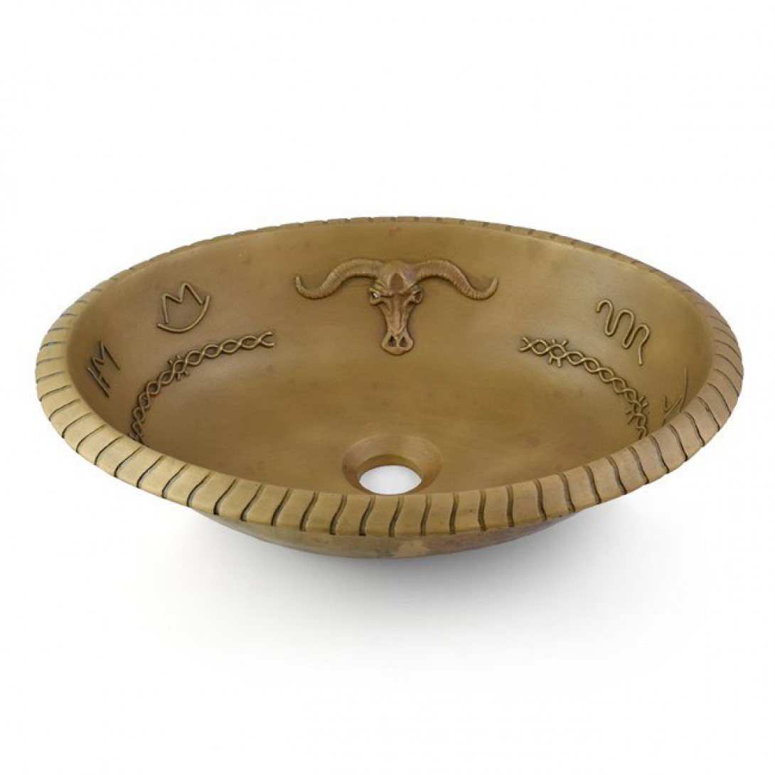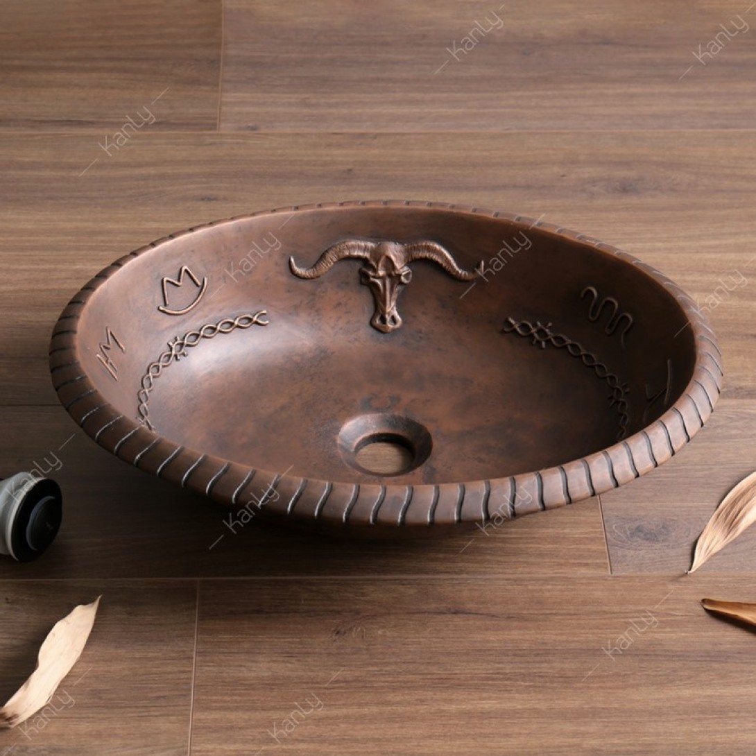 Chậu Lavabo Kanly BS026 Đặt Bàn Đồng Thau Họa Tiết Đầu Trâu 490x380x130 mm