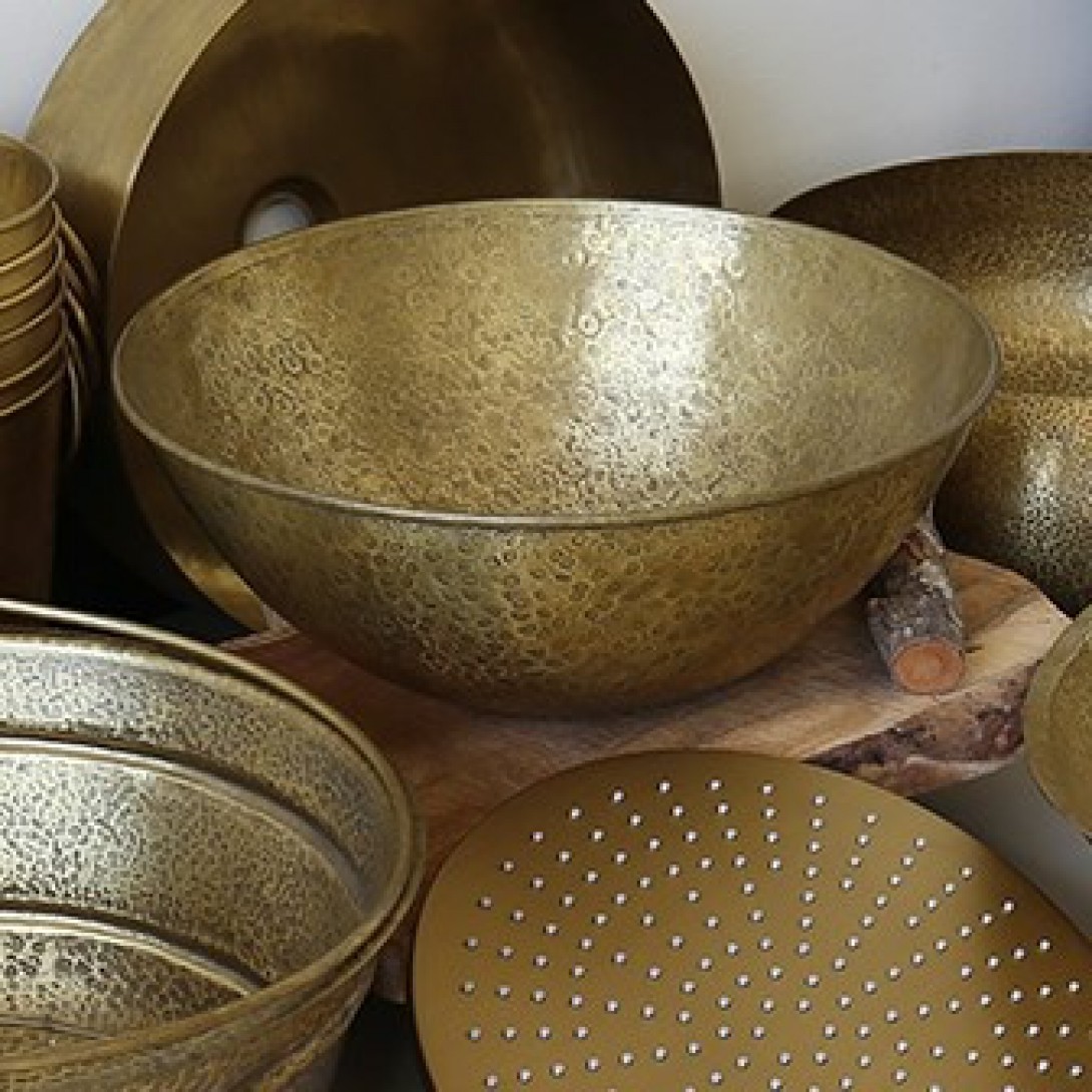 - Chúng tôi làm việc với các thợ thủ công để chế tác các sản phẩm chậu rửa, bồn tắm, và các phụ kiện khác bằng đồng, cảm hứng từ các vật liệu tự nhiên, thân thiện, cổ kính.