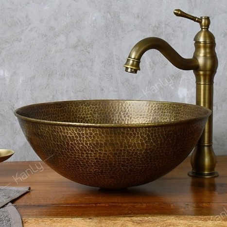 Reviews Over Chậu Lavabo Kanly RSC202V Đặt Bàn Đồng Thau Giả Cổ Tròn 370x150 mm