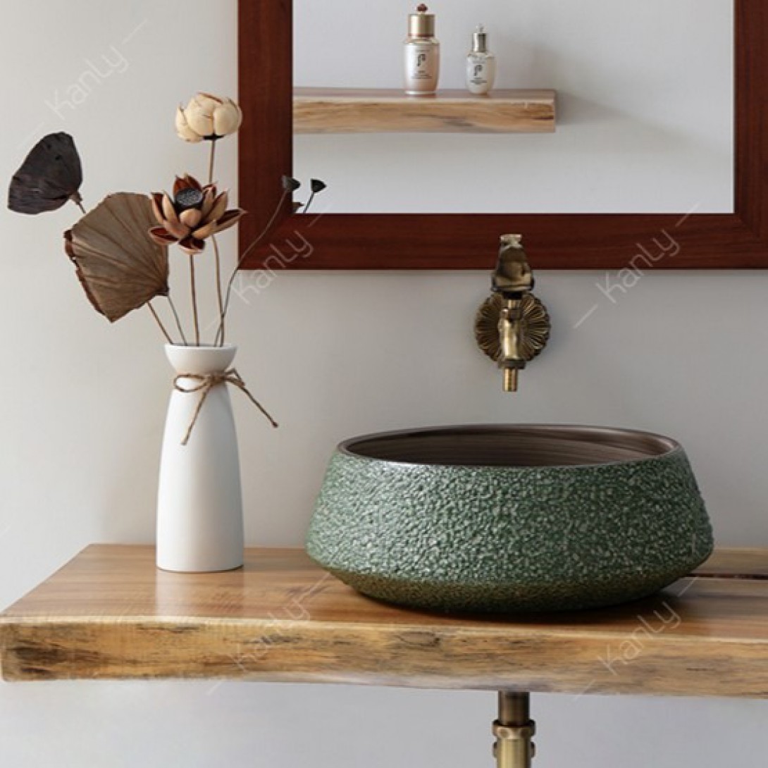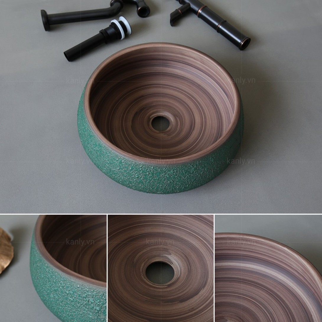 - Chậu rửa Kanly bằng gốm sứ sản xuất thủ công, chậu sứ mỹ thuật, có thể dùng như lavabo sứ để nổi trên mặt bàn.