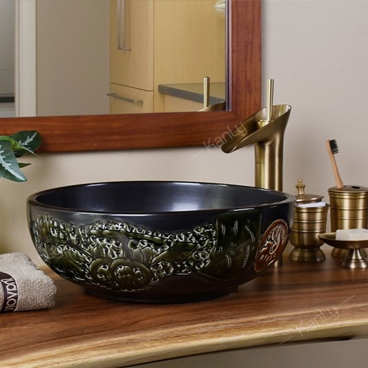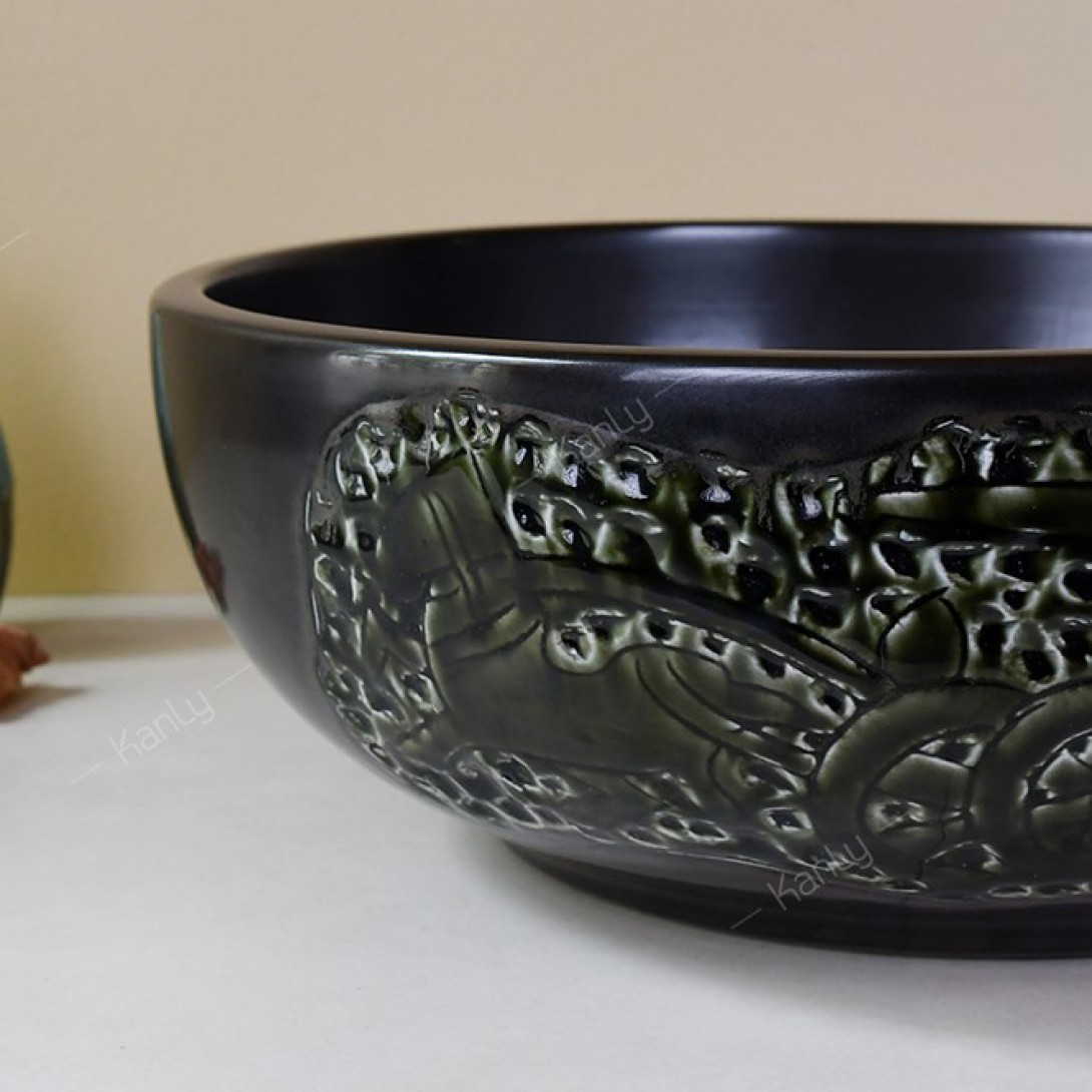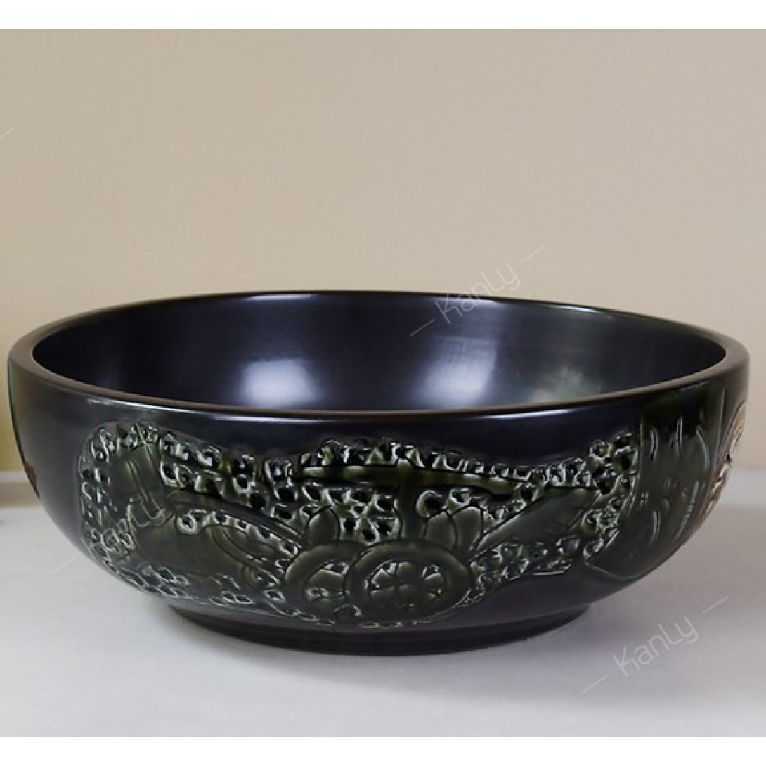 - Chậu rửa Kanly bằng gốm sứ sản xuất thủ công, chậu sứ mỹ thuật, có thể dùng như lavabo sứ để nổi trên mặt bàn.