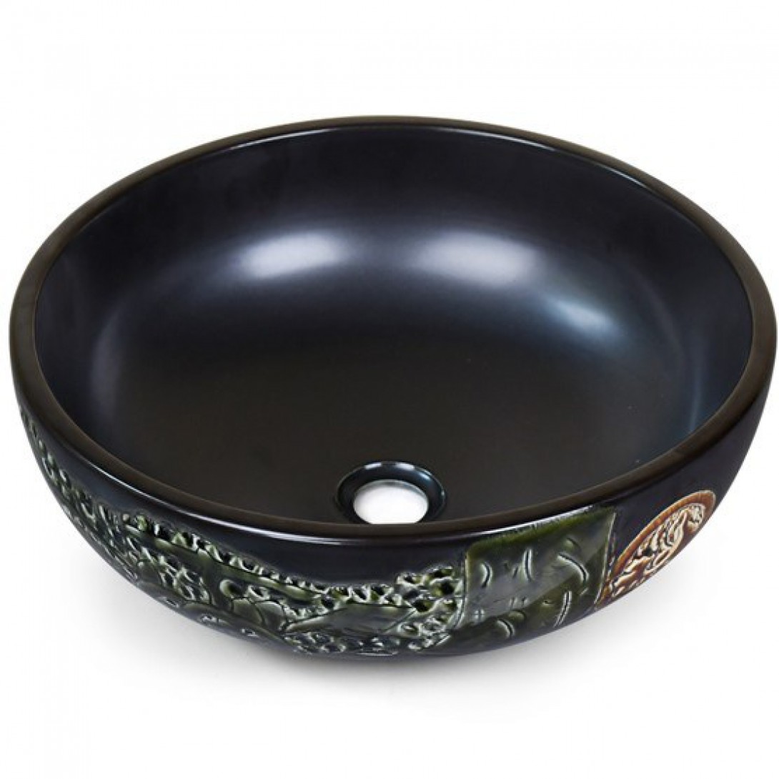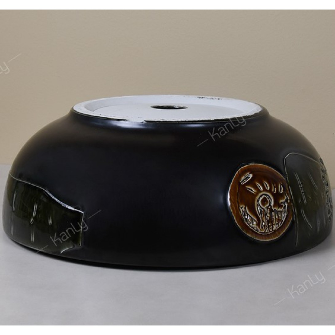 Chậu Lavabo Kanly SU522 Đặt Bàn Sứ Tròn Màu Đen 360x120 mm