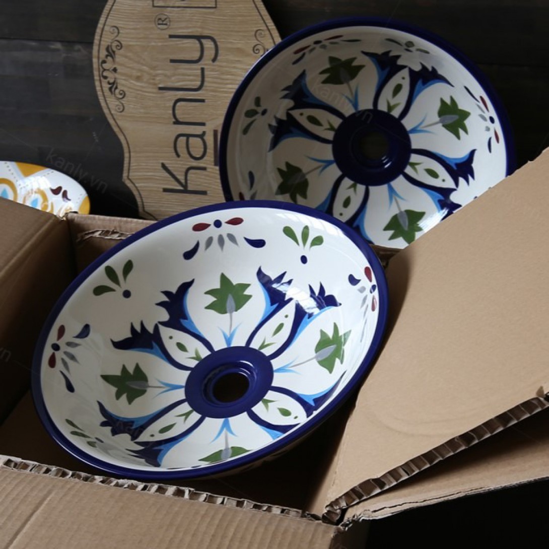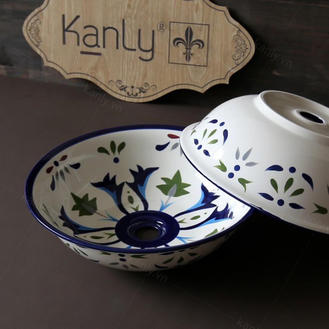 Thông tin chậu lavabo Kanly vẽ tay hoa văn SU401 đặt bàn