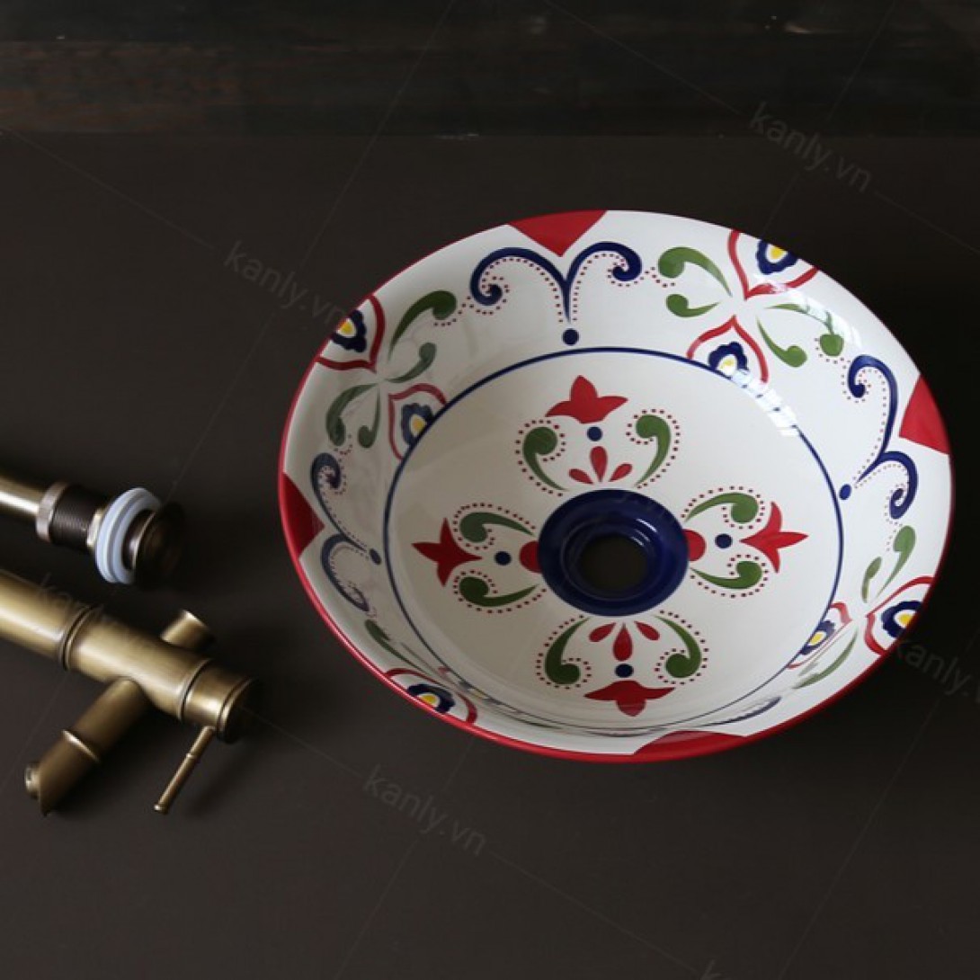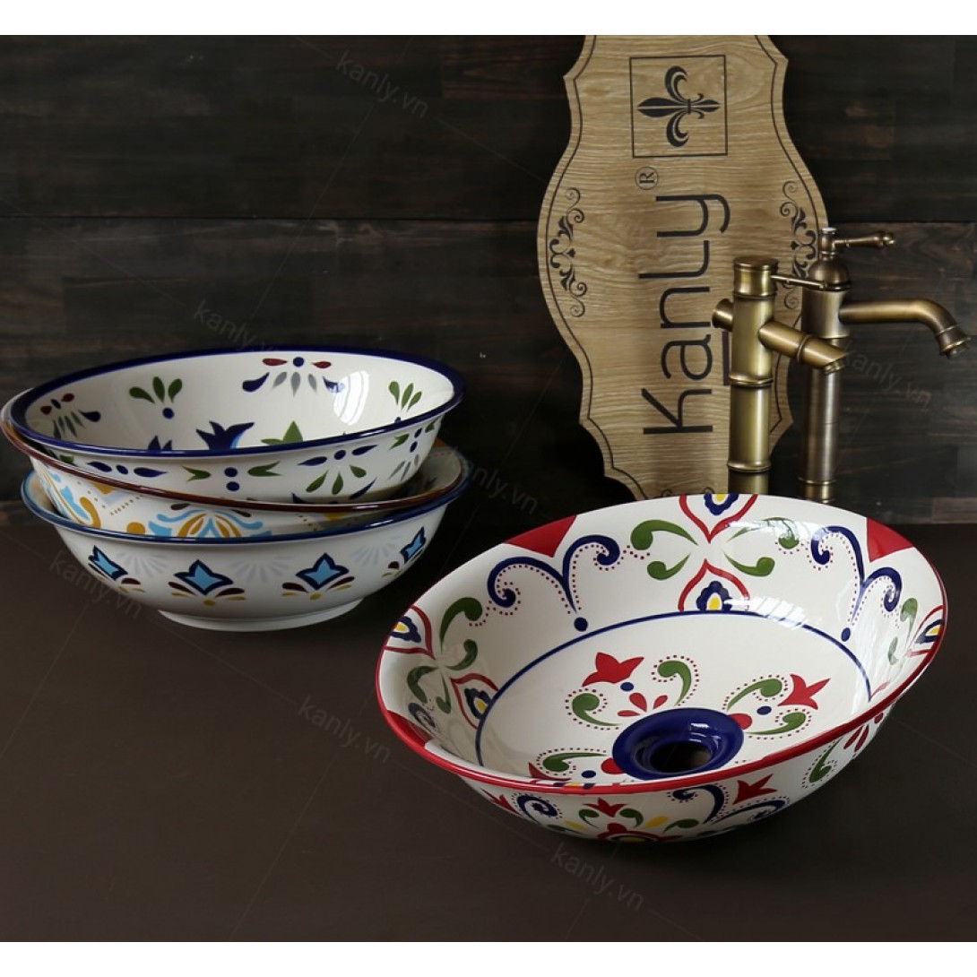 - Chậu rửa Kanly bằng gốm sứ sản xuất thủ công, chậu sứ mỹ thuật, có thể dùng như lavabo sứ để nổi trên mặt bàn.
