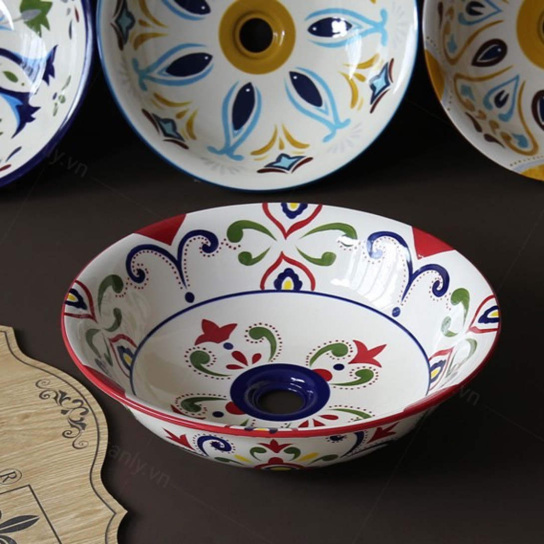 - Lavabo sứ hoa văn phong cách mỹ thuật Moorish