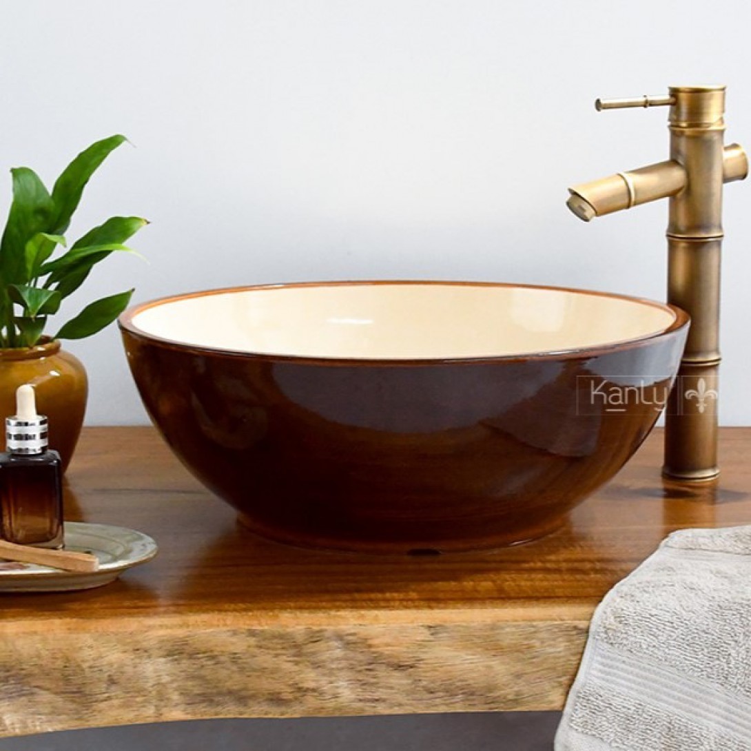 Chậu Lavabo Kanly SU521 Đặt Bàn Sứ Tròn Màu Nâu 360x120 mm