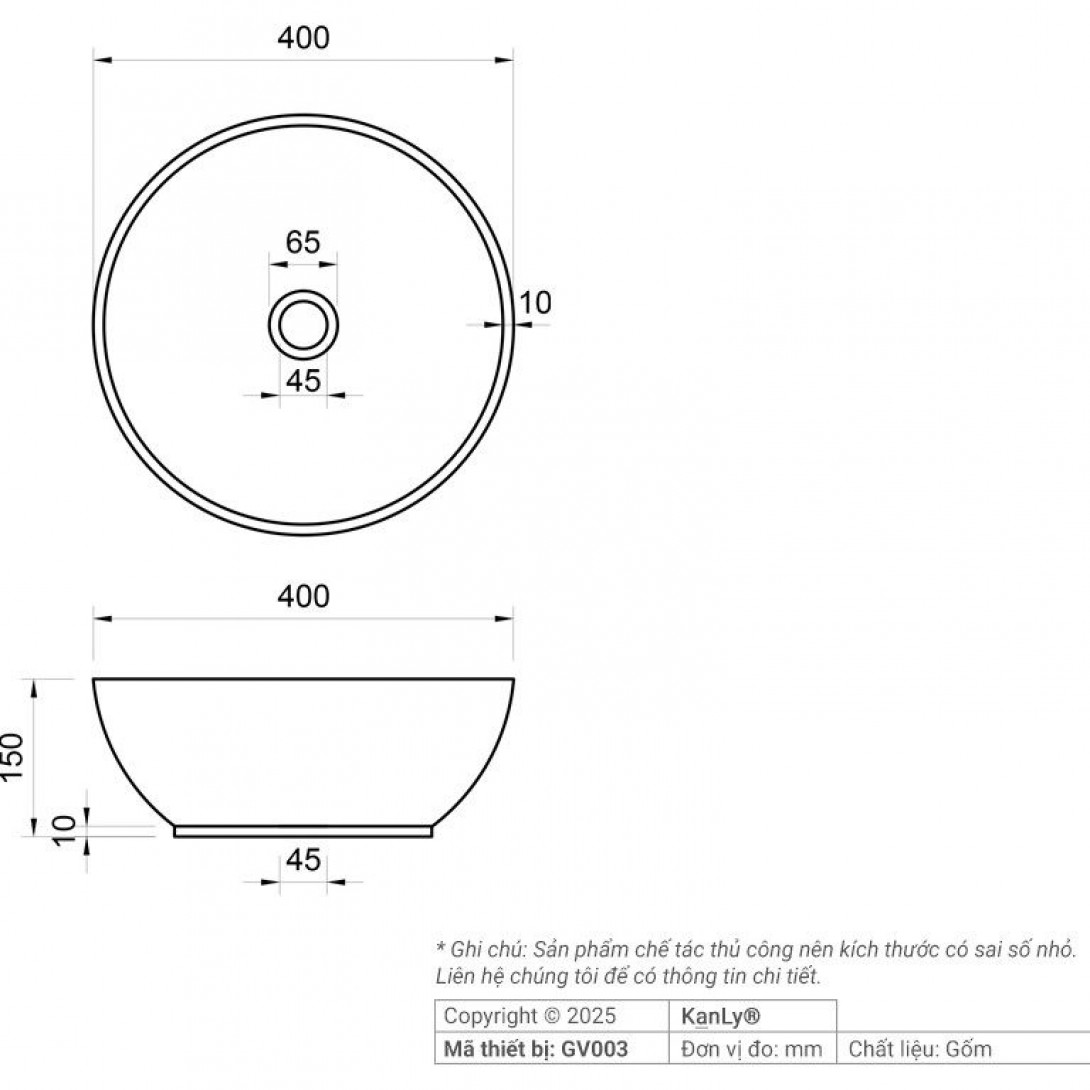 Thông tin chậu lavabo Kanly GV003 bằng gốm đặt bàn