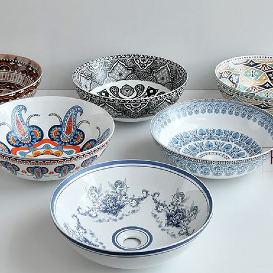- Lavabo sứ hoa văn phong cách mỹ thuật Moroccan