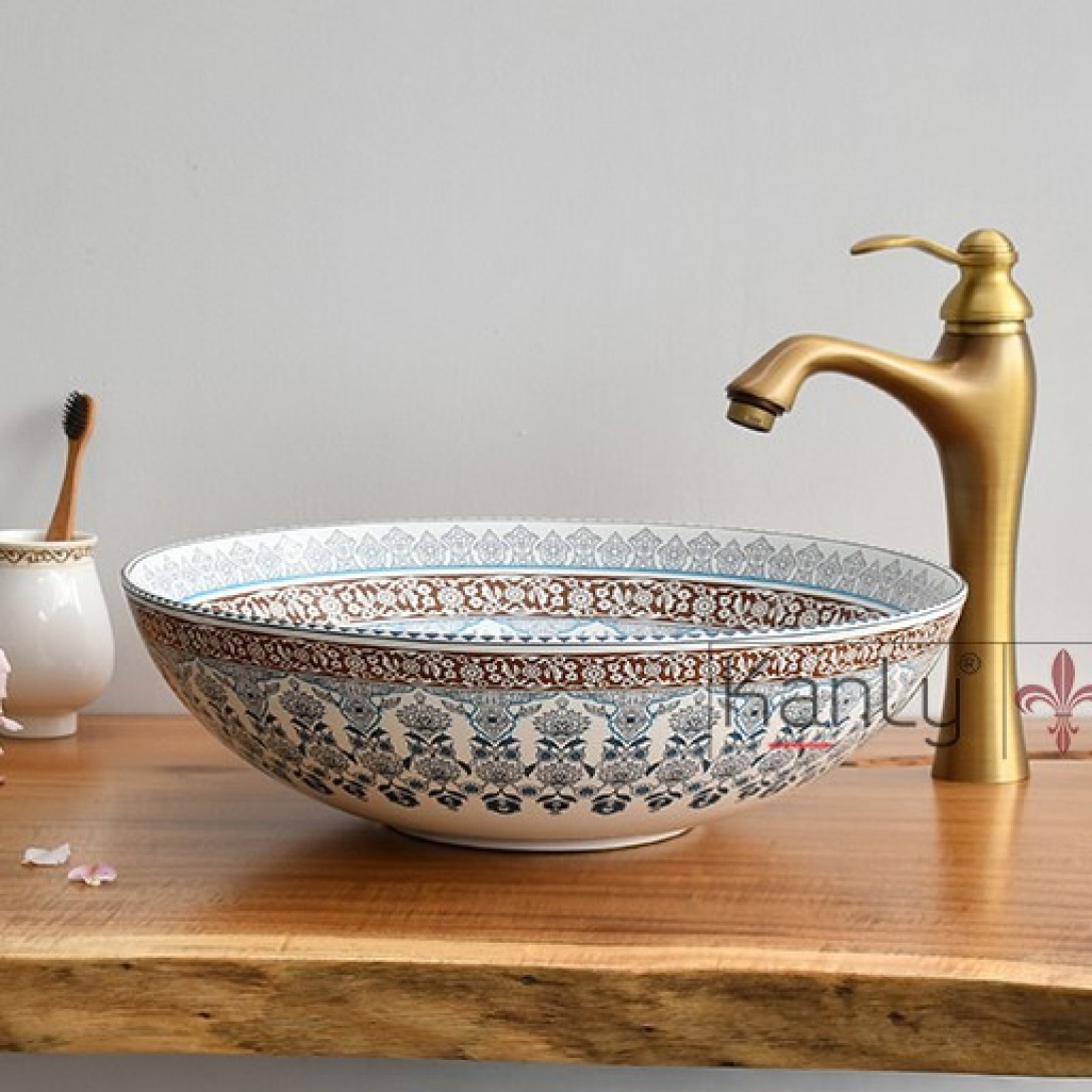 - Lavabo sứ hoa văn phong cách mỹ thuật Mongolians