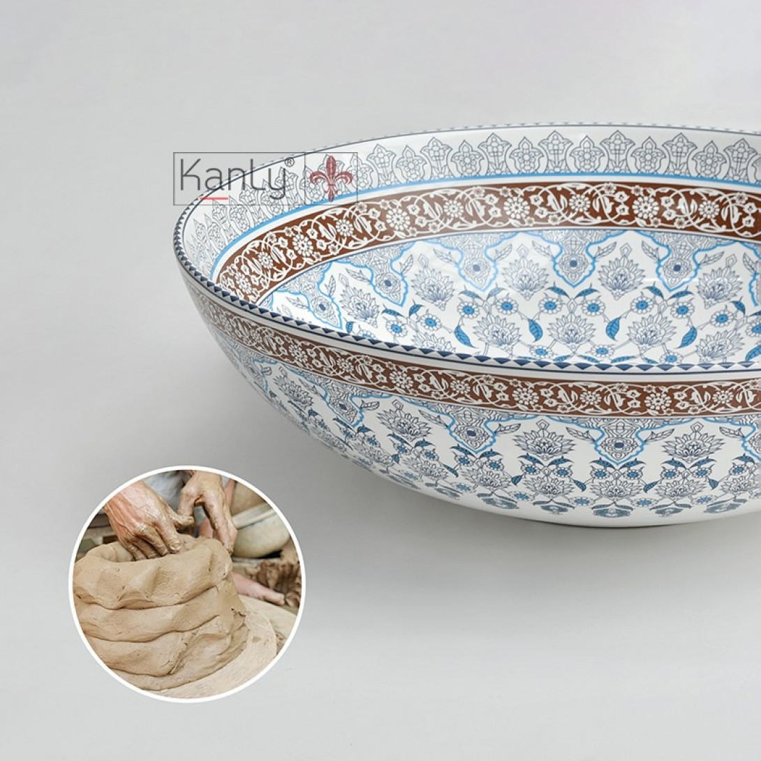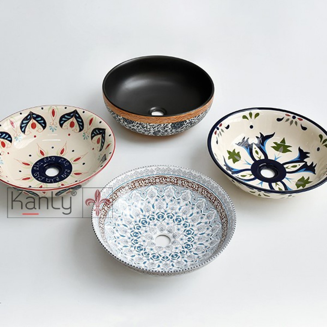 - Chậu rửa Kanly bằng gốm sứ sản xuất thủ công, chậu sứ mỹ thuật, có thể dùng như lavabo sứ để nổi trên mặt bàn.