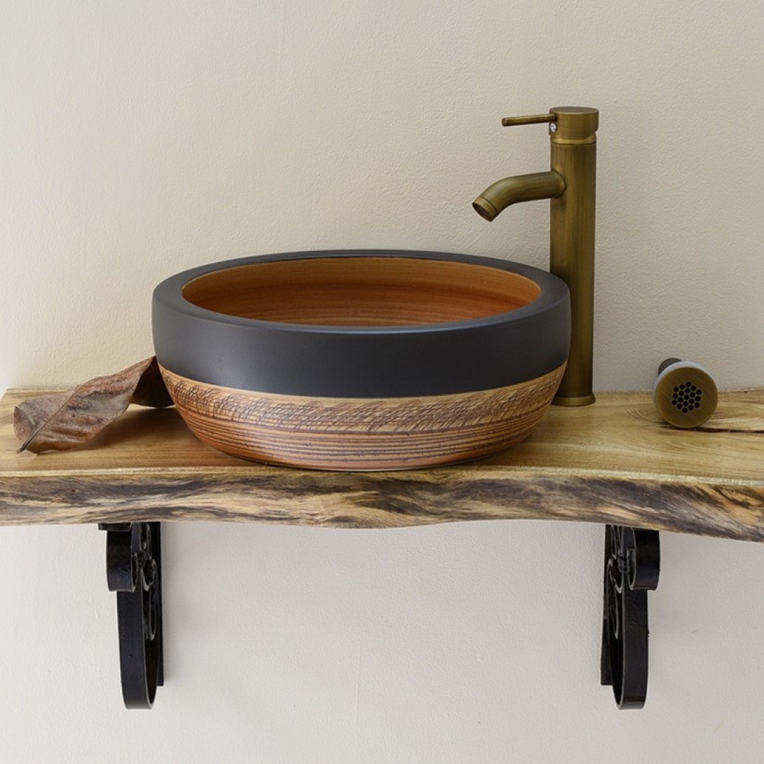 - Với sự sáng tạo của các nhà decor thiết kế mỹ thuật thiết bị có thể được kiến trúc phối cảnh để mang lại giá trị nghệ thuật mỹ thuật cao và công năng sử dụng tiện nghi hữu ít cho thiết bị như rửa mặt, rửa tay khu vực vệ sinh, lối đi, phòng ăn phòng khách, nhà thủy tạ… Đặc biệt hơn nếu chậu gốm sứ mỹ thuật này được dùng chung với vòi xả bằng đồng thau tông màu cổ, nâu ấm,..
