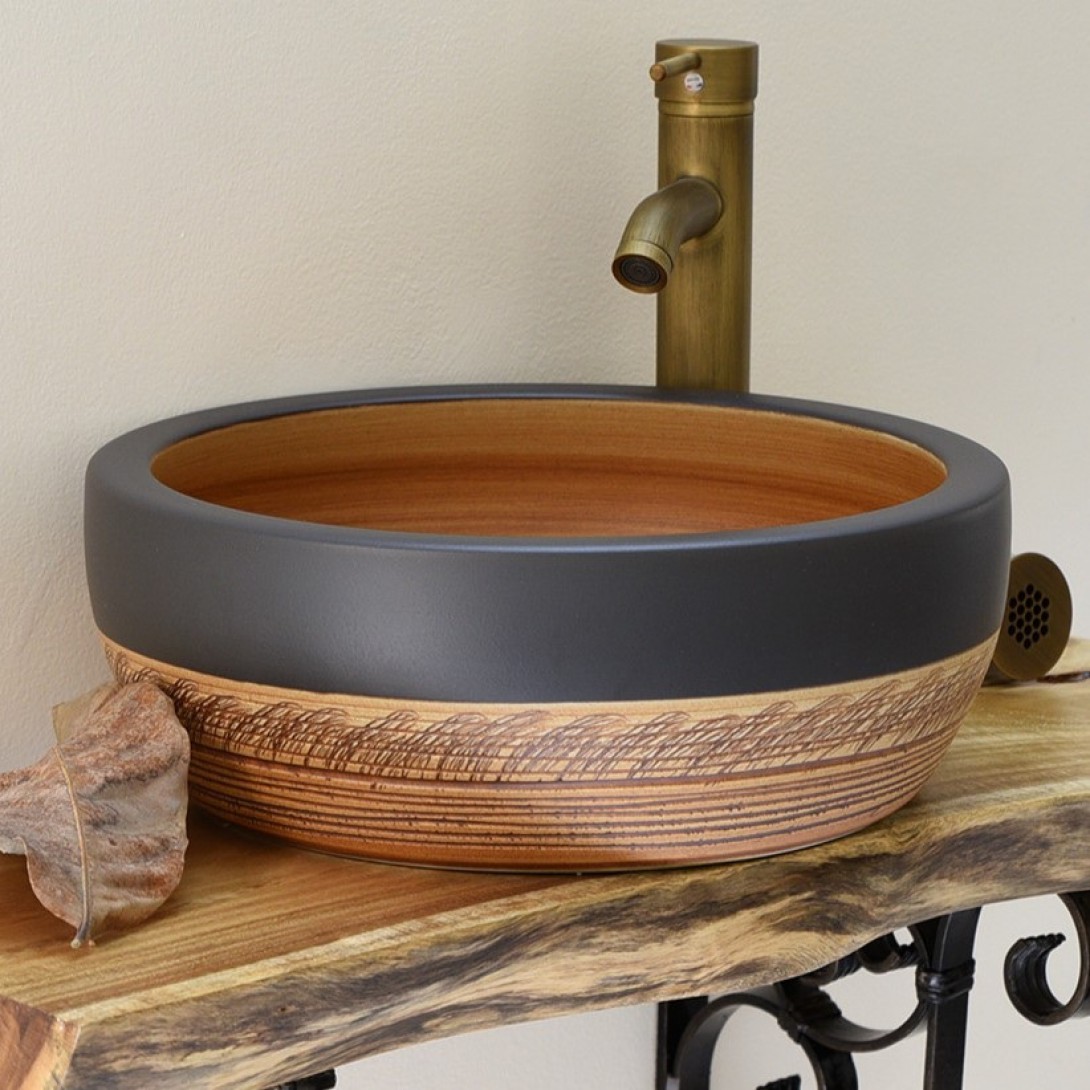Chậu Lavabo Kanly SU521 Đặt Bàn Sứ Tròn Màu Nâu 360x120 mm