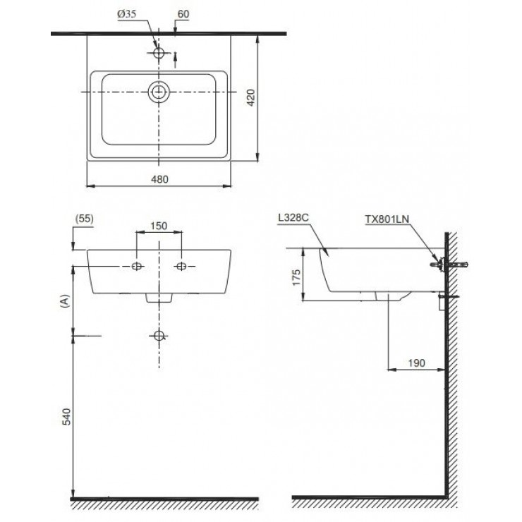 Bản vẽ chậu rửa mặt TOTO LT 328C treo tường