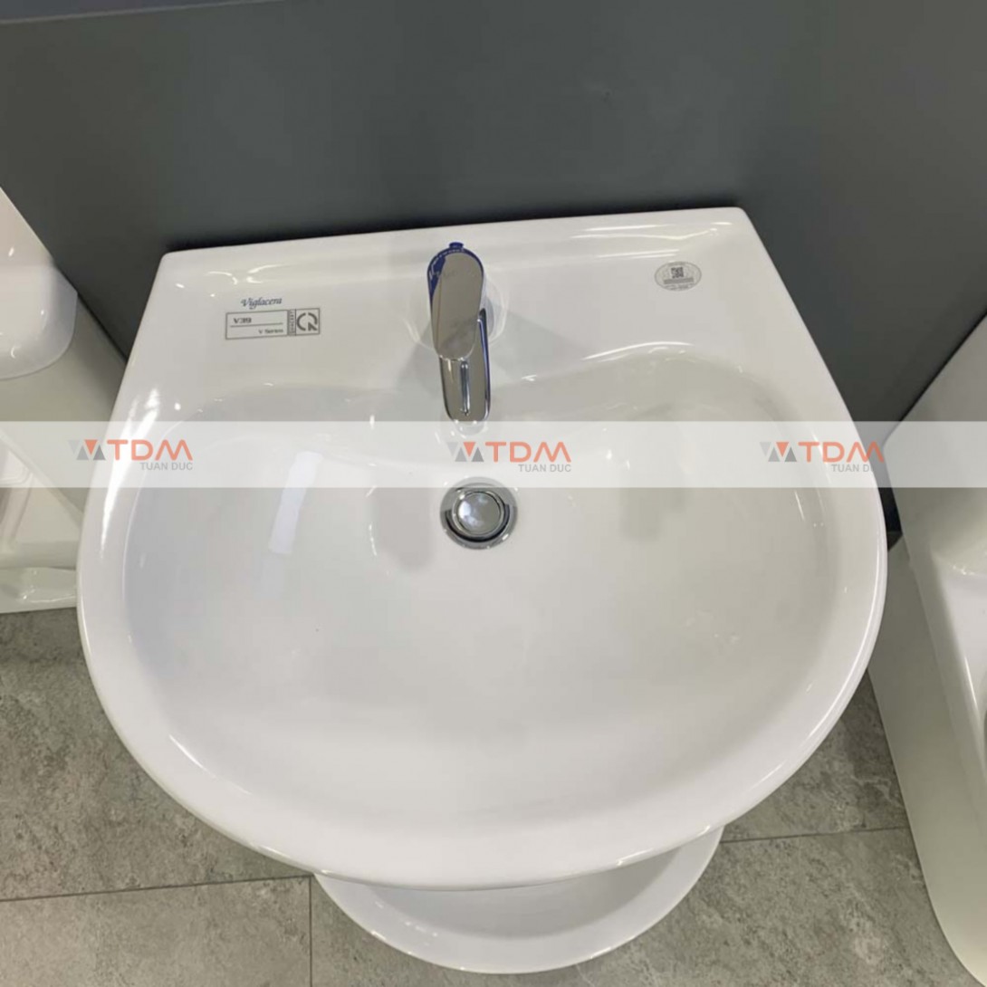 - Chậu rửa Lavabo Viglacera V39 treo tường chân lửng đến từ thương hiệu thiết bị vệ sinh Viglacera