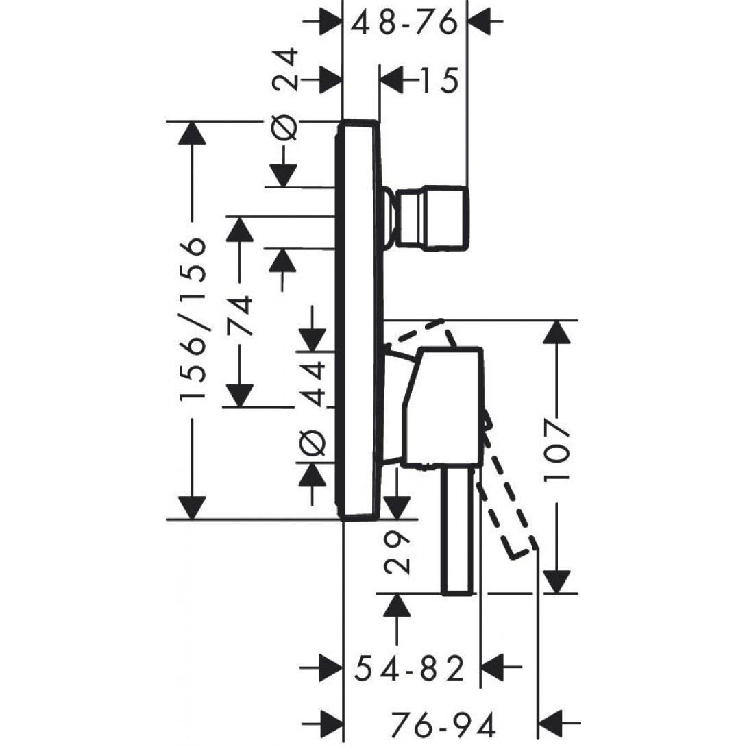 Bản vẽ van điều chỉnh nóng lạnh Hansgrohe 76415000 kèm nút chuyển hướng