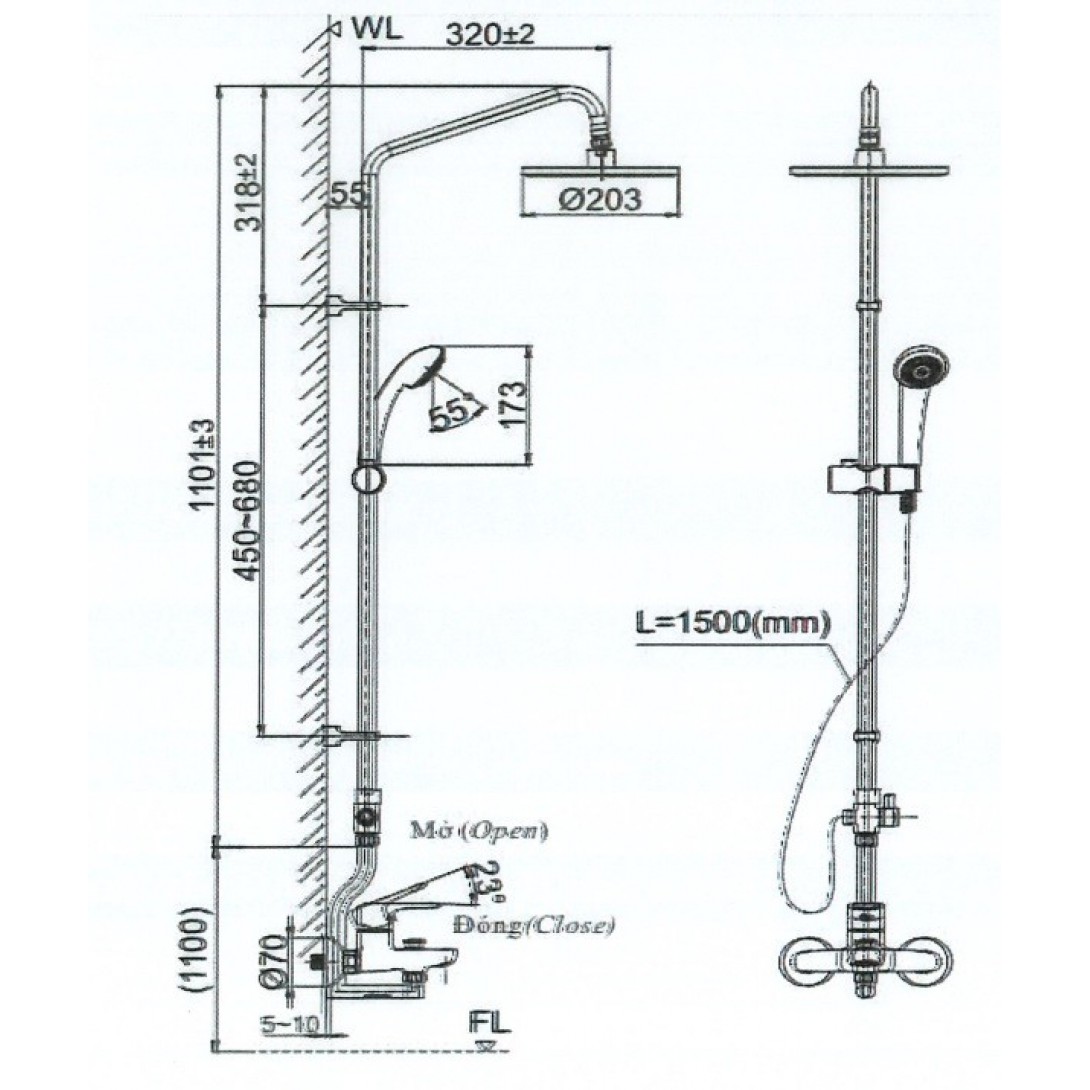 - Chiều dài dây sen : 1500mm