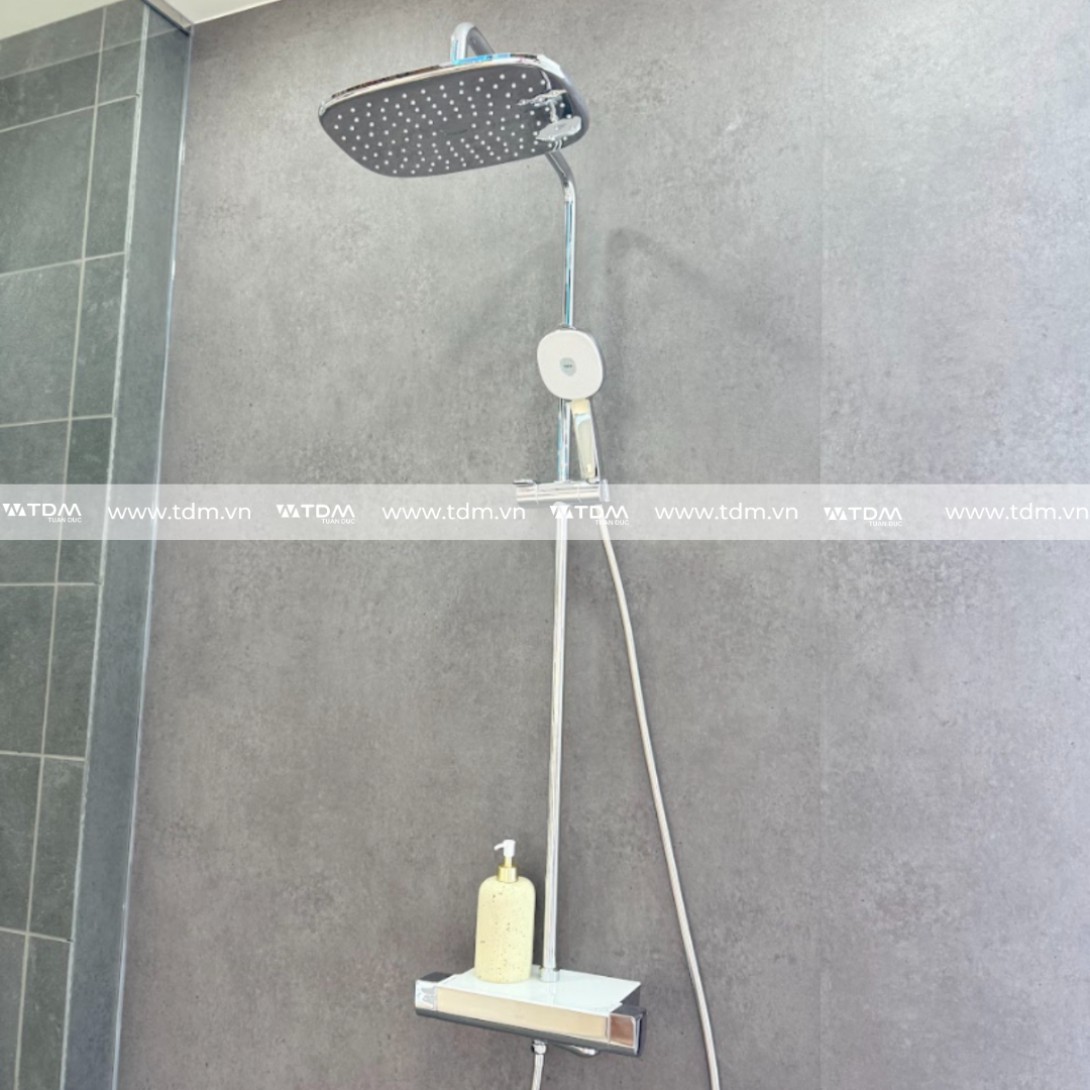 - Sen tắm đứng nhiệt độ kiểu dáng hình khối hiện đại, sang trọng, khác biệt với 2 tay cầm điều khiển.