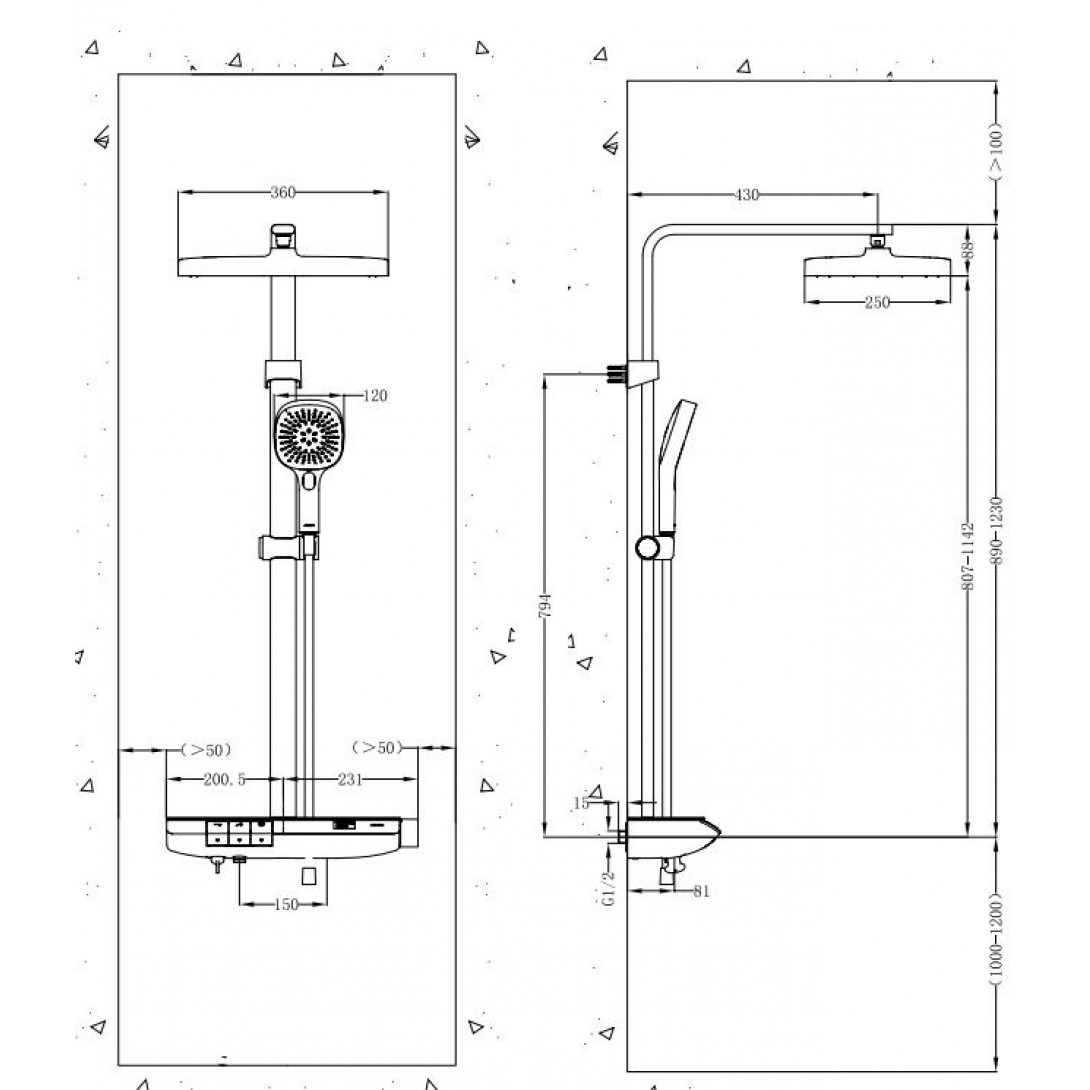 Bản vẽ kích thước cây sen tắm 36603724HBSI011 Jomoo
