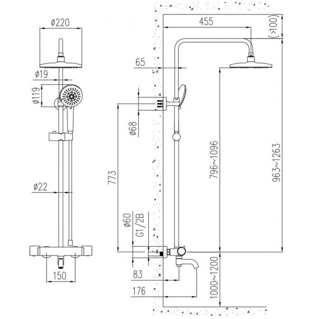Bản vẽ kích thước cây sen tắm 261405331BI011 Jomoo