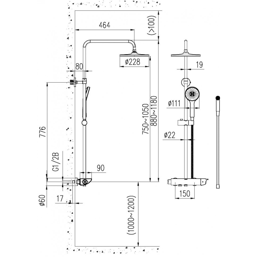 Bản vẽ kích thước cây sen tắm 364734631BI011 Jomoo