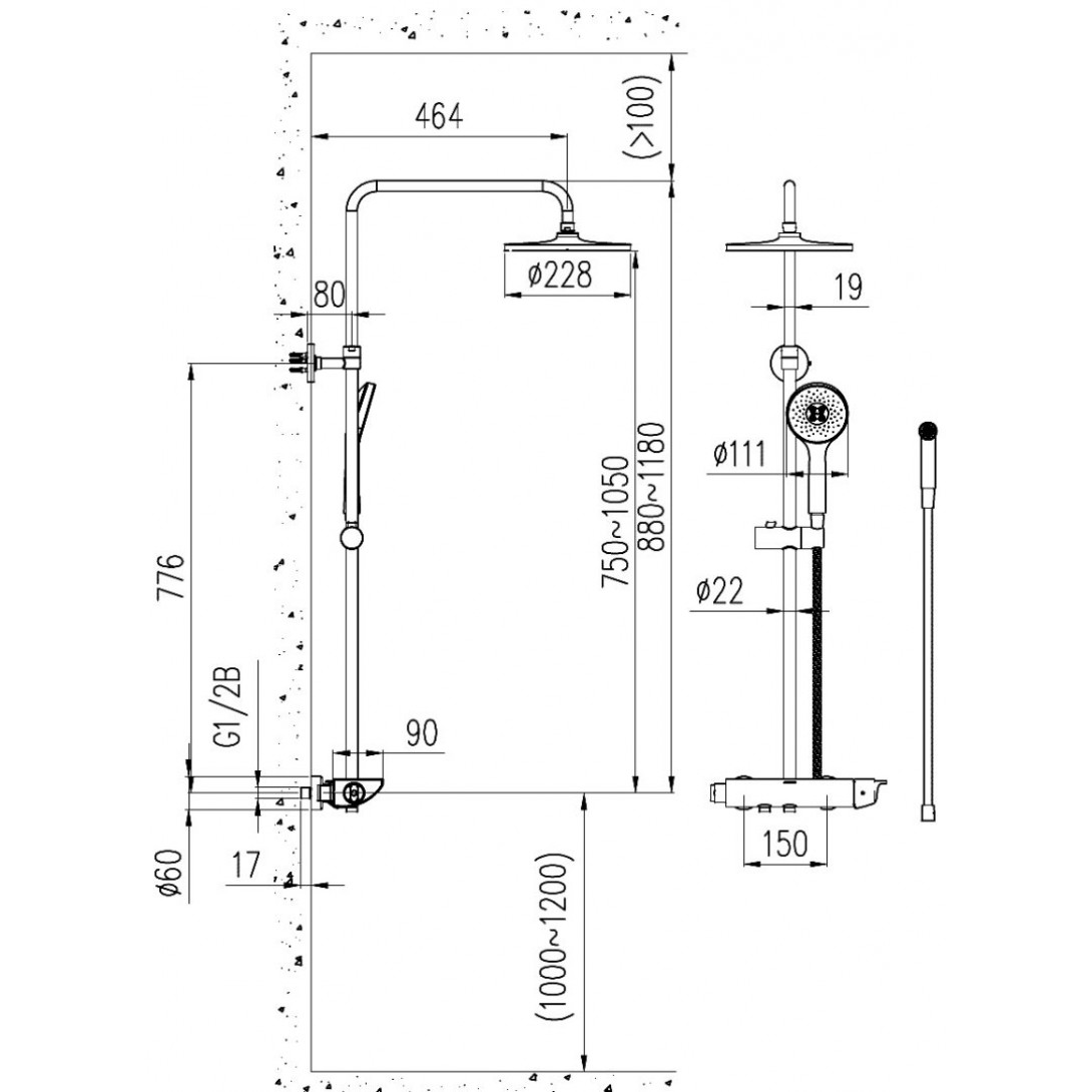 Bản vẽ kích thước cây sen tắm 36473463HBSI011 Jomoo