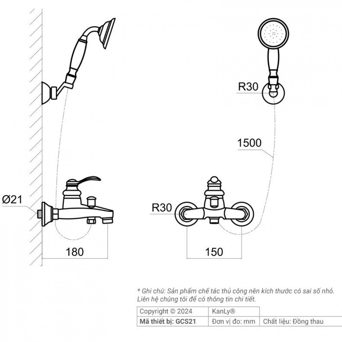 Thông tin vòi sen tắm Kanly GCS21 nóng lạnh gắn tường Bộ sen gắn tường, củ..
