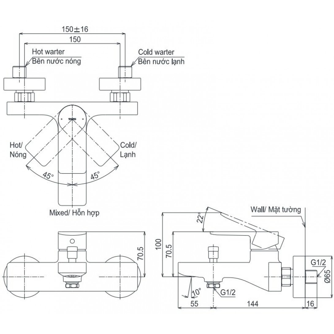 Bản vẽ kích thước sen tắm TBG 13302A-TBW 09010V