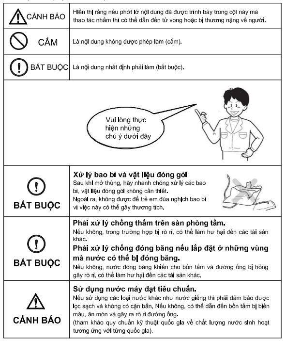 - Phải lắp đặt đúng theo hướng dẫn. Nếu không sẽ gây ra rò rỉ dẫn đến hư hại đến các tài sản khác.